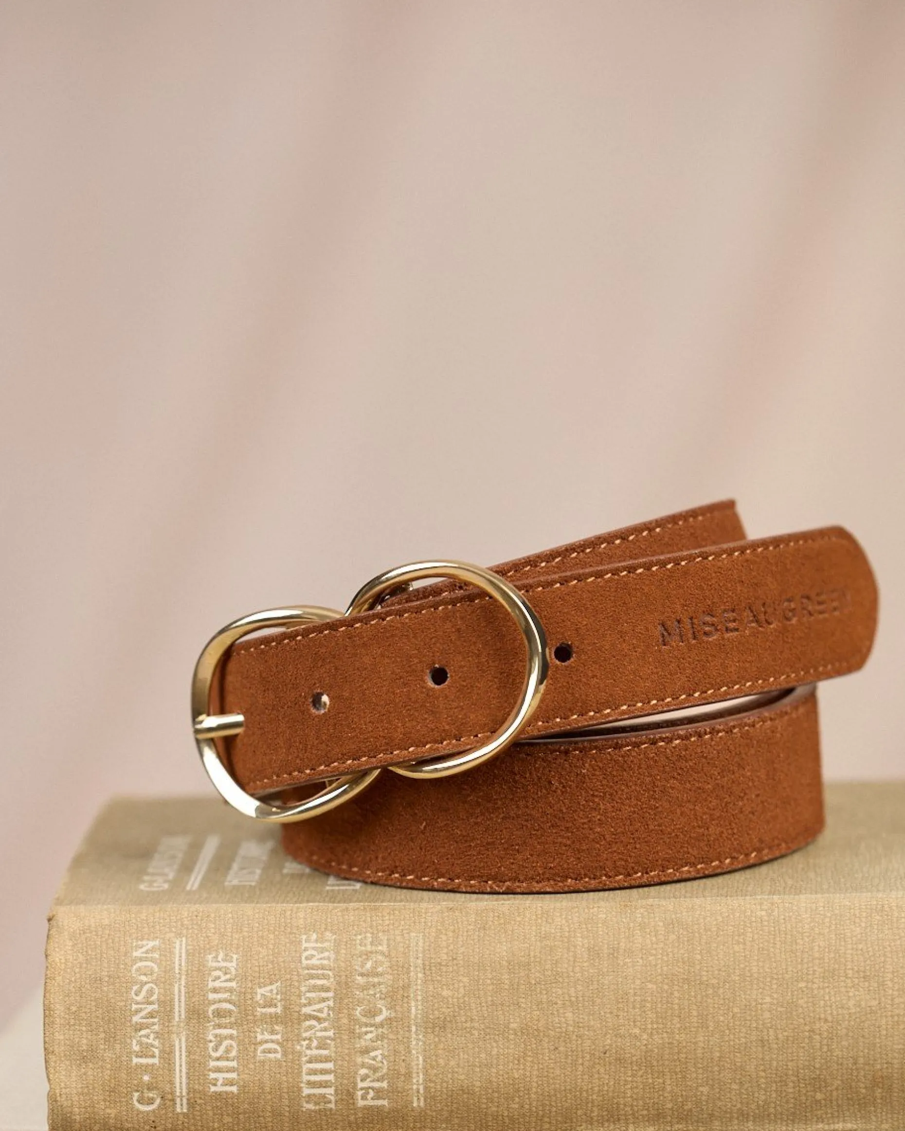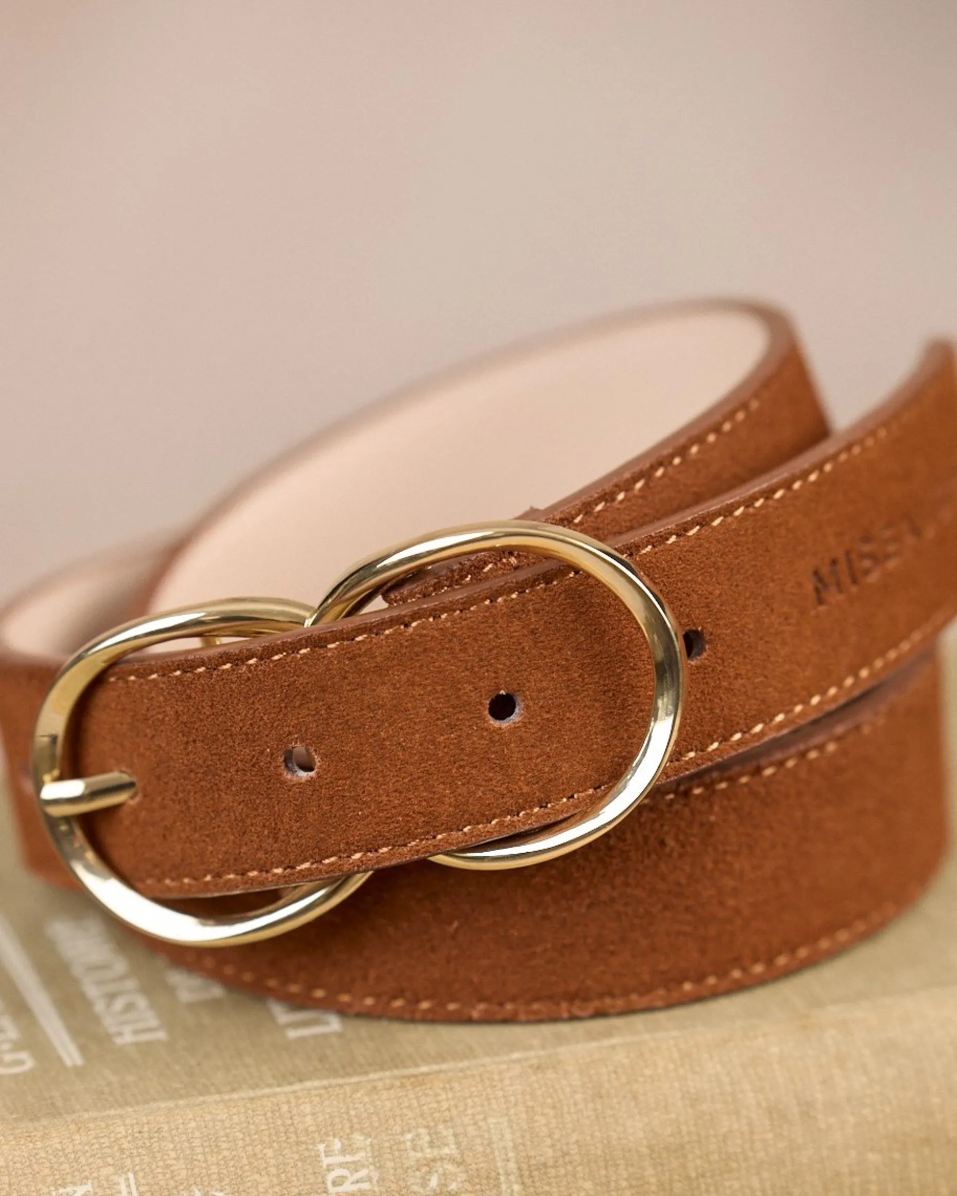 Accessoirisez vos tenues avec cette ceinture marron en cuir suédé ! Essentielle en toutes circonstances, elle permet aussi bien de maintenir un pantalon que de ceinturer une veste. Réalisé dans un cuir souple et doux, cet accessoire est finalisé avec une boucle arrondie dorée en métal. C’est aussi une belle idée de cadeau !