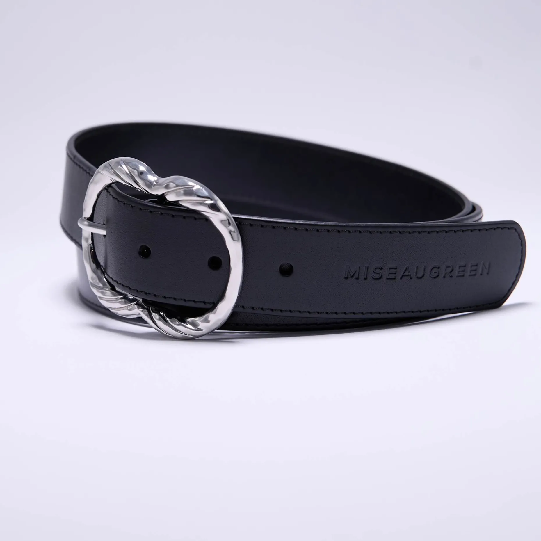 Plus qu’un simple accessoire, cette ceinture est l’atout chic qui complète vos tenues ! Cet accessoire 100 % cuir se porte à la taille pour dessiner la silhouette ou avec un pantalon pour le maintenir. Avec son design minimaliste et sa teinte noire, elle se porte avec tout. Ce modèle signé Mise au Green est finalisé par une boucle argentée.