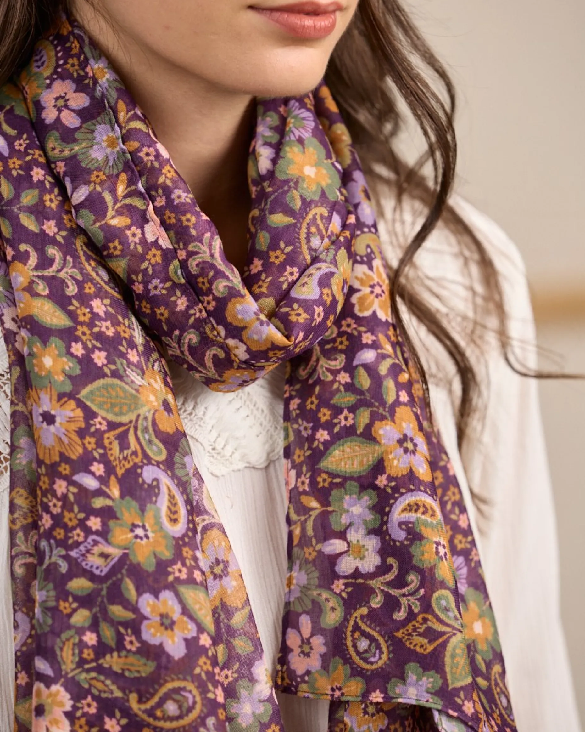 Parsemé de fleurs, ce chèche pour femme adoucit vos tenues et apporte une touche de gaieté ! Son coloris violet est rehaussé d’un bel imprimé floral. C’est l’accessoire parfait pour des tenues au style bohème-chic. En toute saison, profitez de sa douceur et de sa légèreté grâce à sa matière en coton issu de l’agriculture biologique.