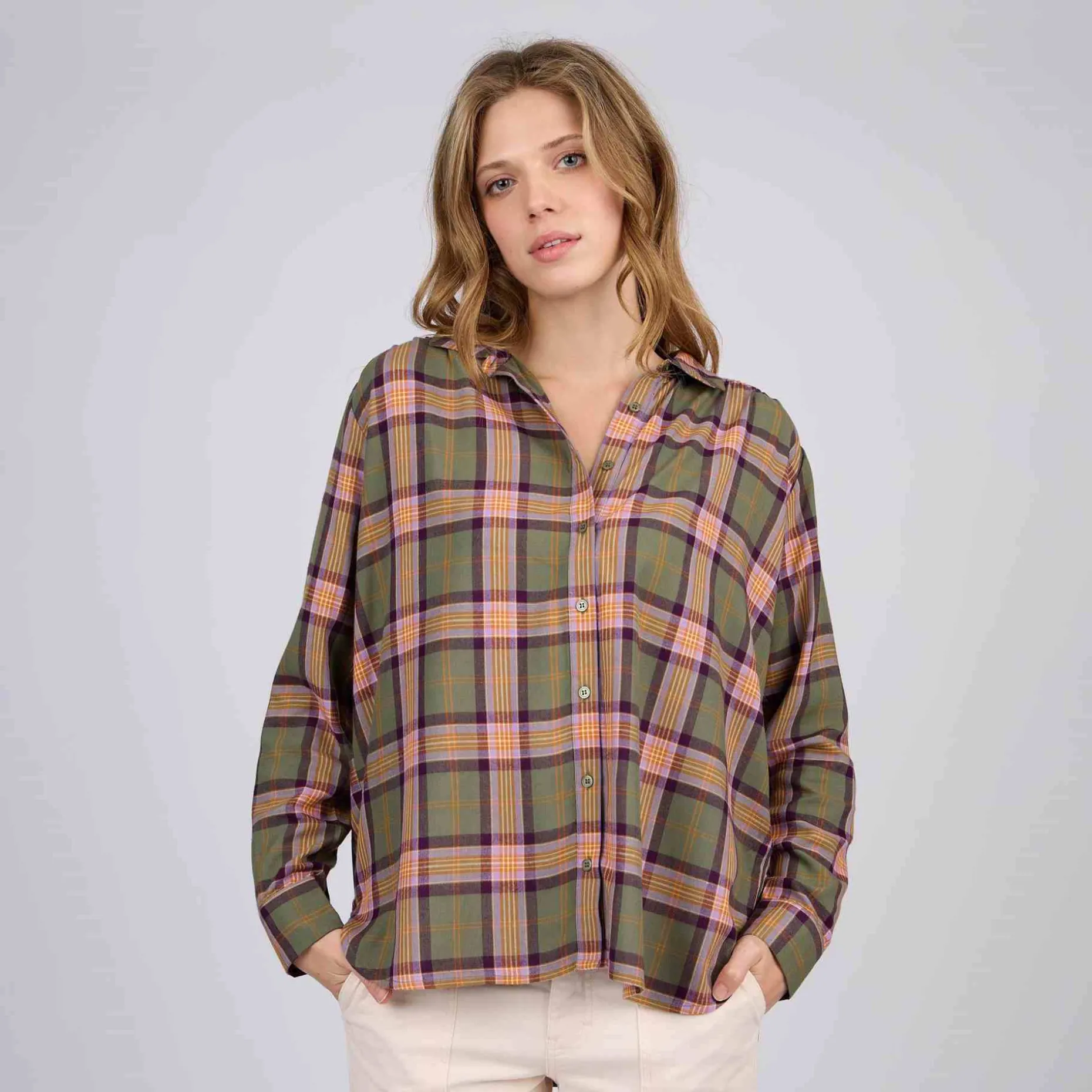 Complétez votre dressing avec cette chemise à carreaux Mise au Green ! Réalisé dans un tissu soyeux et léger en coton, ce modèle à manches longues est idéal pour des tenues féminines et décontractées. Ses atouts mode ? Son coloris kaki facile à vivre, sa coupe confortable et sa plaquette dorée à l’arrière. Il se marie parfaitement avec un pantalon clair ou un jean !