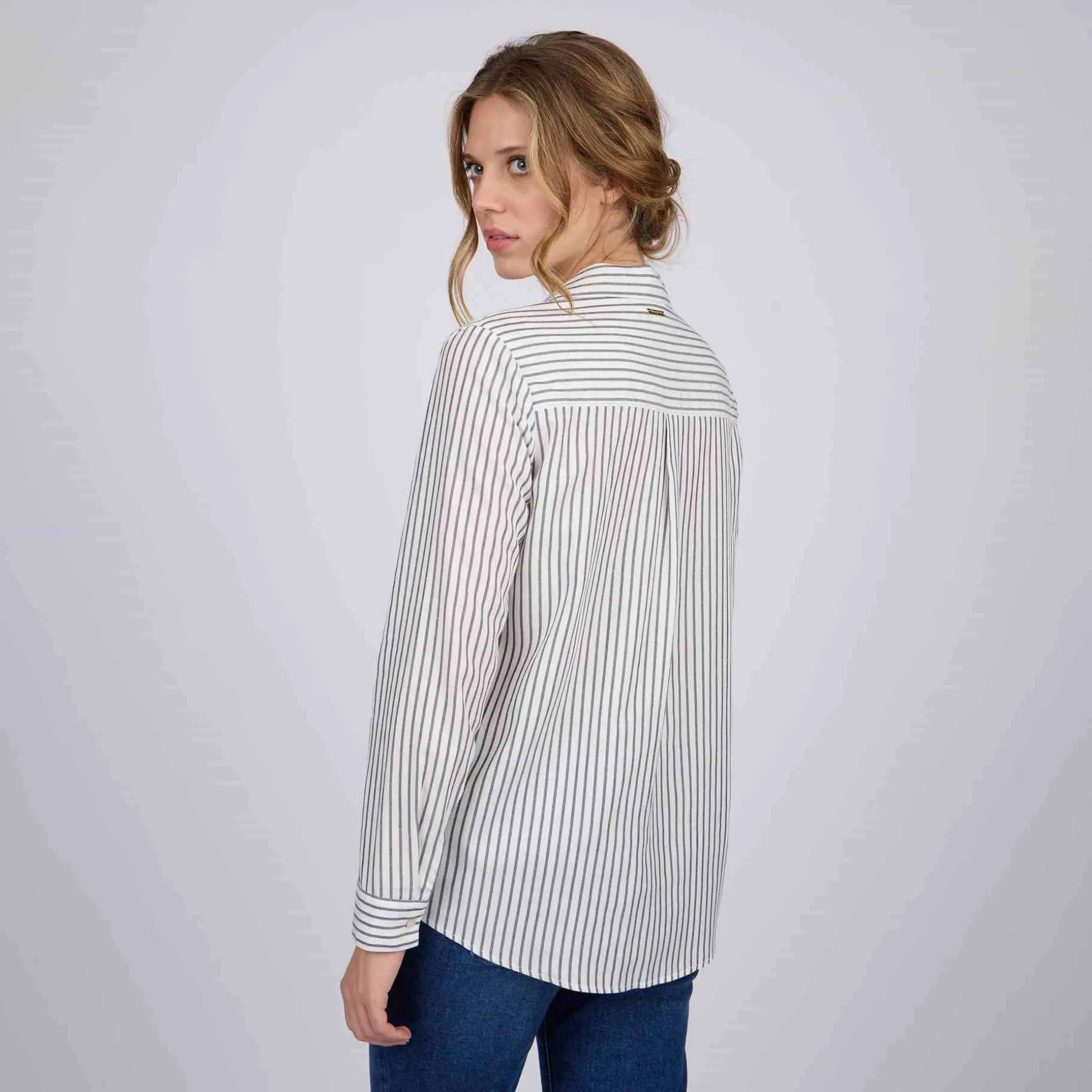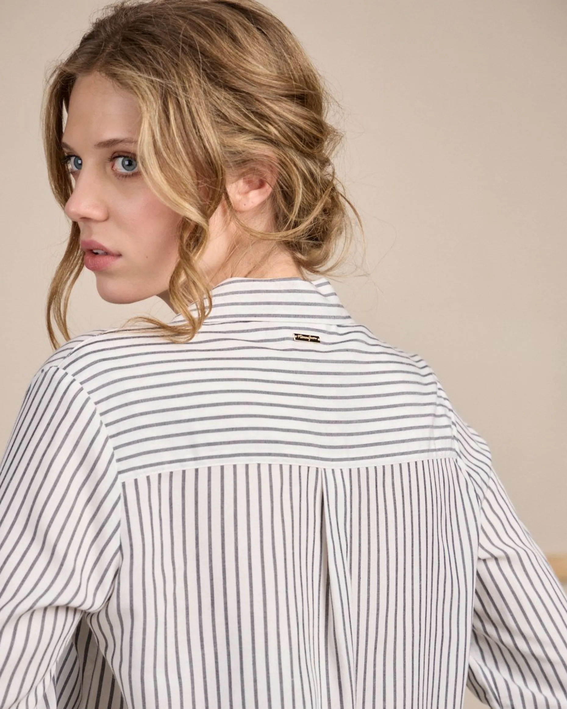 Avec son allure sophistiquée et versatile, cette chemise à manches longues est un classique indémodable ! Elle est dotée d’un imprimé à rayures bleu marine qui se coordonne facilement avec n’importe quel pantalon. Pour un supplément de style, elle est complétée par une fermeture boutonnée et une petite plaquette Mise au Green à l’arrière. Une pièce en viscose parfaite pour les journées où l’on cherche à allier chic et simplicité !