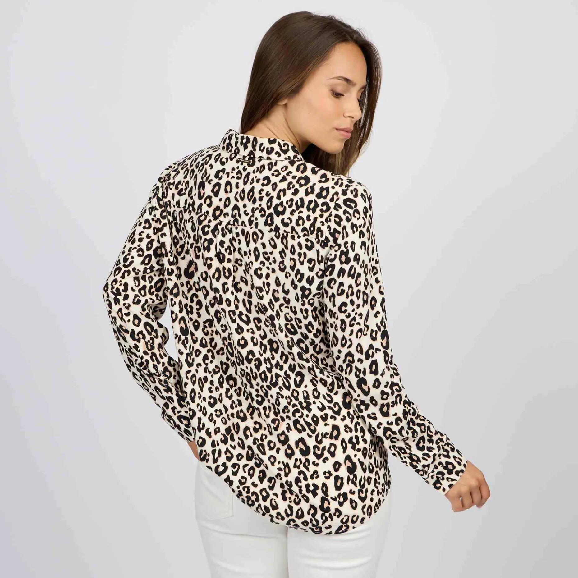 Prêt à arborer un style aussi chic qu’audacieux ? Craquez pour notre chemiser beige au motif léopard. Réalisé intégralement en viscose, il est doux et confortable. Portez-le pour des occasions décontractées et ajoutez une touche sexy et féminine à votre tenue ! Son petit plus : sa fermeture boutonnée et sa plaquette dorée Mise au Green à l’arrière. Pour le mettre en valeur, enfilez-le avec un pantalon blanc, une jupe en jean ou un pantalon en cuir. Ce modèle est labellisé OEKO-TEX® Standard 100 (VN020 184613 – OETI).