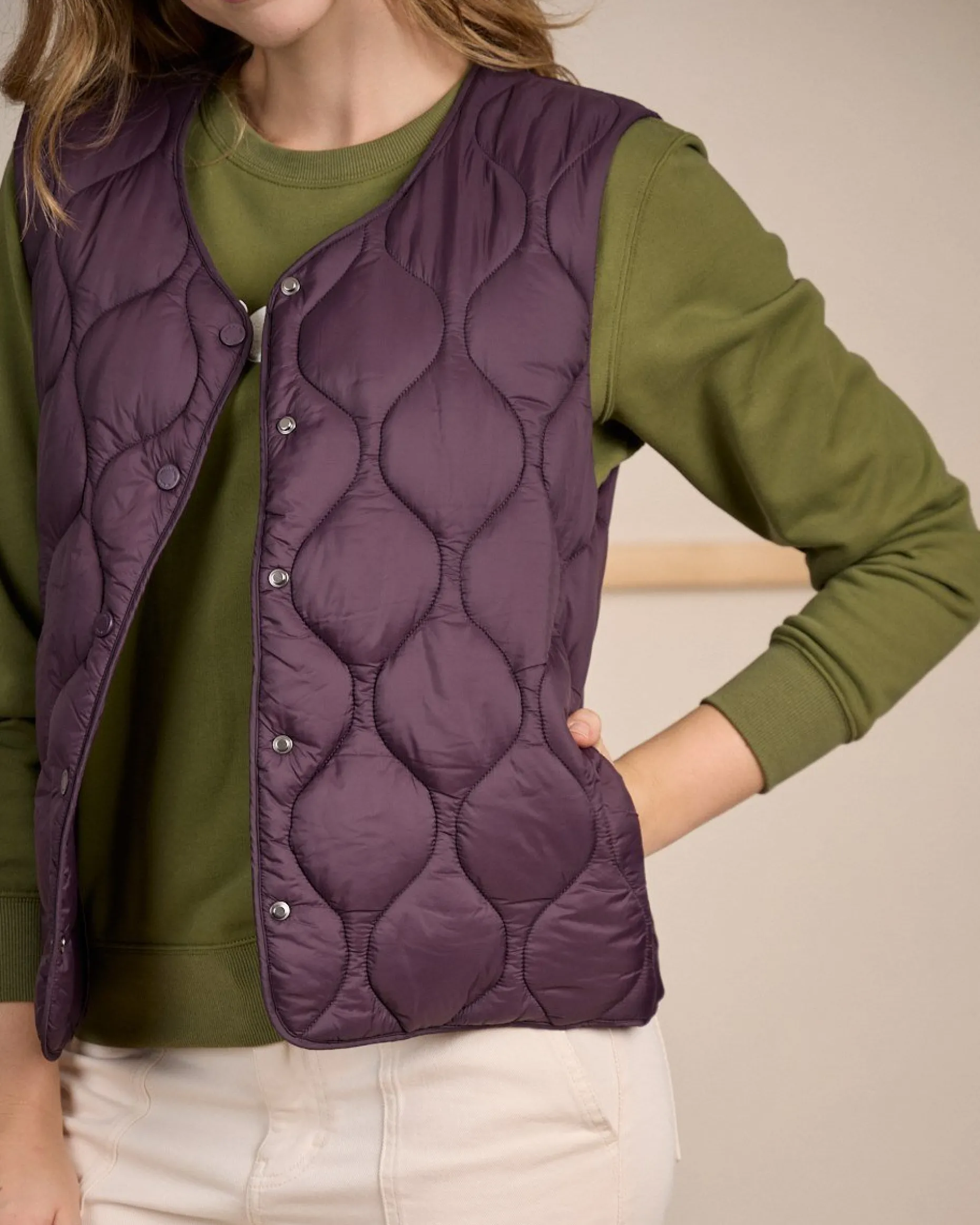 Fonctionnelle et versatile, cette doudoune sans manches violet vous suit au quotidien ! Conçue en polyamide, elle vous isole du froid, du vent et de la pluie. Elle est équipée d’une fermeture boutonnée à l’avant, de poches latérales zippées et d’une petite encolure en V. Compacte, légère et fine : elle va rapidement devenir votre indispensable de la saison !