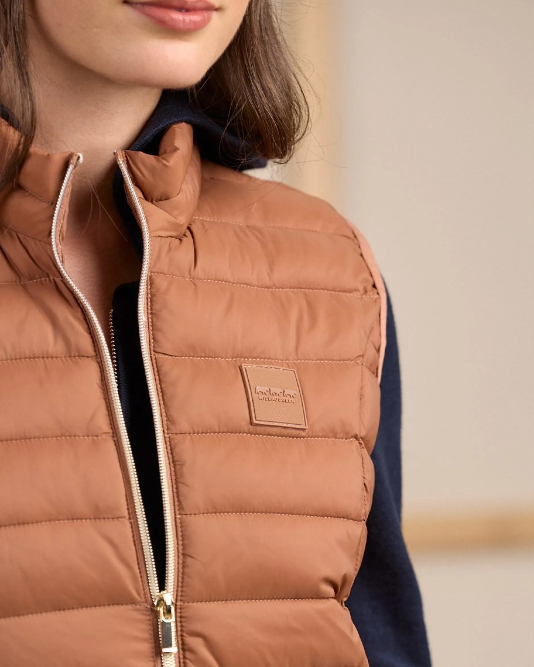 Réalisée en polyamide, cette doudoune sans manches résiste aux intempéries ! Avec son coloris uni marron et son effet matelassé, elle vous aide à adopter une allure décontractée et sophistiquée. Le détail qui fait la différence ? Sa fermeture éclair dorée. Deux poches latérales et un badge signature complètent cette pièce épurée et polyvalente. Pour ajouter du volume à votre tenue, portez-la par-dessus votre pull ou votre tee-shirt à manches longues favori.