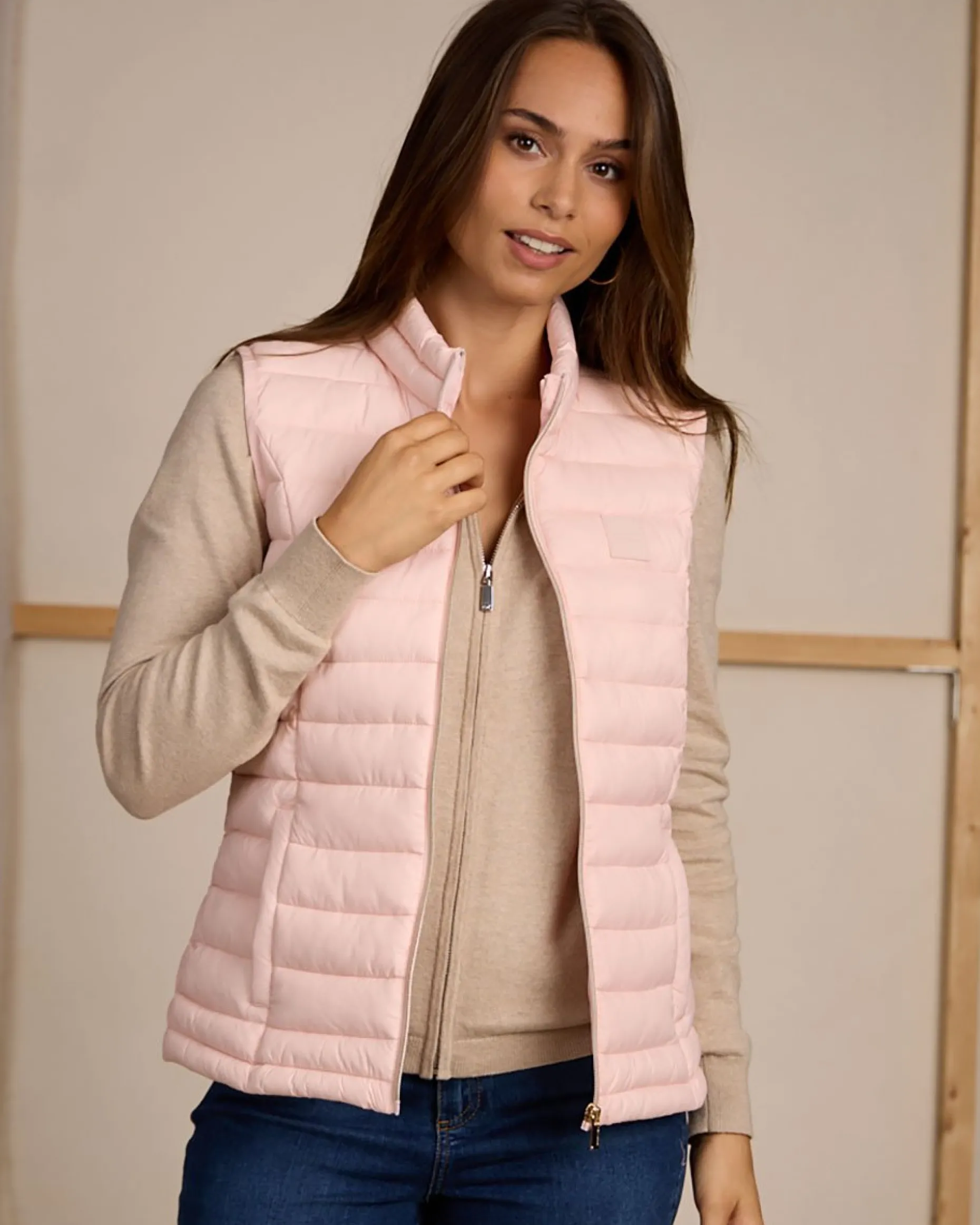Réalisée en polyamide, cette doudoune sans manches résiste aux intempéries ! Avec son coloris uni rose pâle et son effet matelassé, elle vous aide à adopter une allure décontractée et sophistiquée. Le détail qui fait la différence ? Sa fermeture éclair dorée. Deux poches latérales et un badge signature complètent cette pièce épurée et polyvalente. Pour ajouter du volume à votre tenue, portez-la par-dessus votre pull ou votre tee-shirt à manches longues favori.