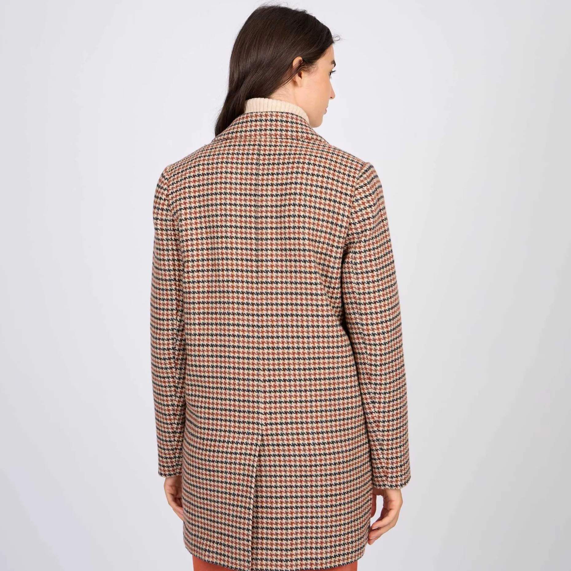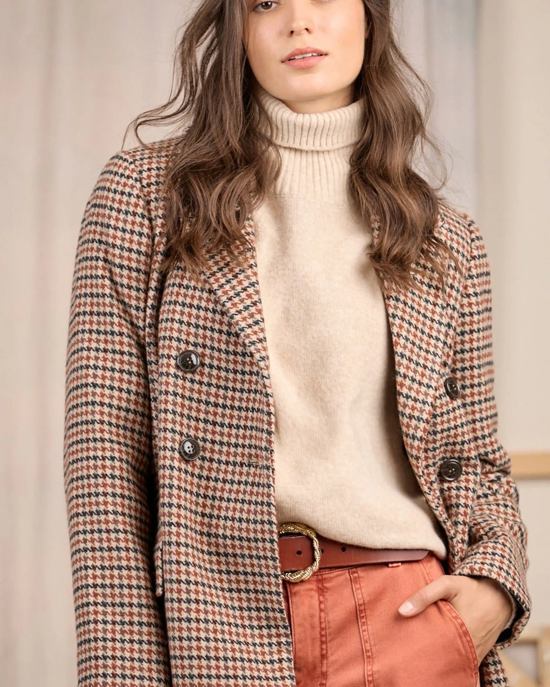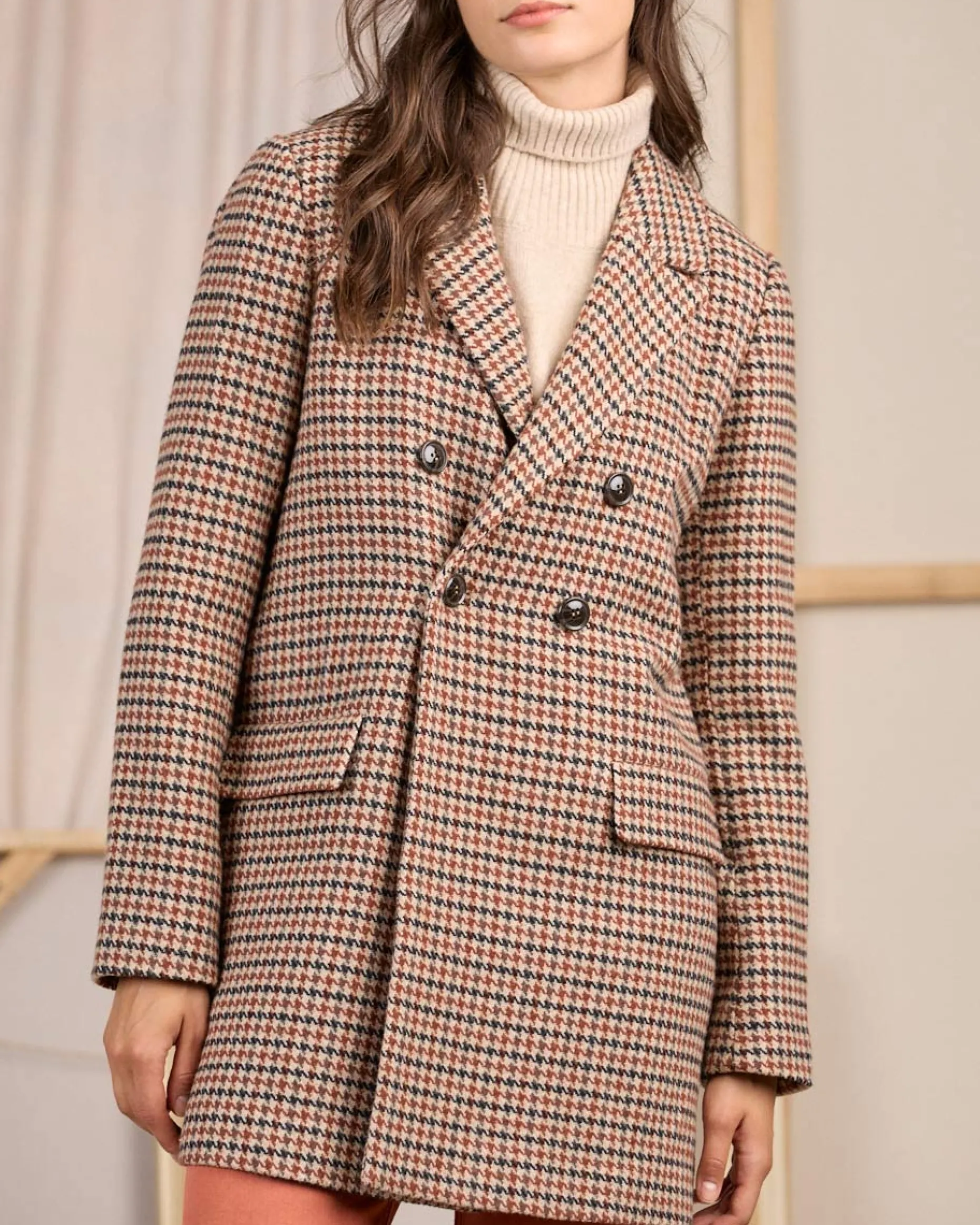 Le manteau pied-de-poule, on ne s’en lasse pas ! Mise au Green revisite ce classique avec ce modèle beige pour femme. Avec ses tons chauds, il adoucit vos looks de saison et s’associe avec toutes sortes de pièces. Délicieusement chic, il offre une longueur mi-cuisses et se ferme grâce à un double boutonnage. Des poches à rabat et un large col rabattu complètent son design raffiné. Offrant chaleur et style, il est réalisé en polyester avec une pointe de laine !