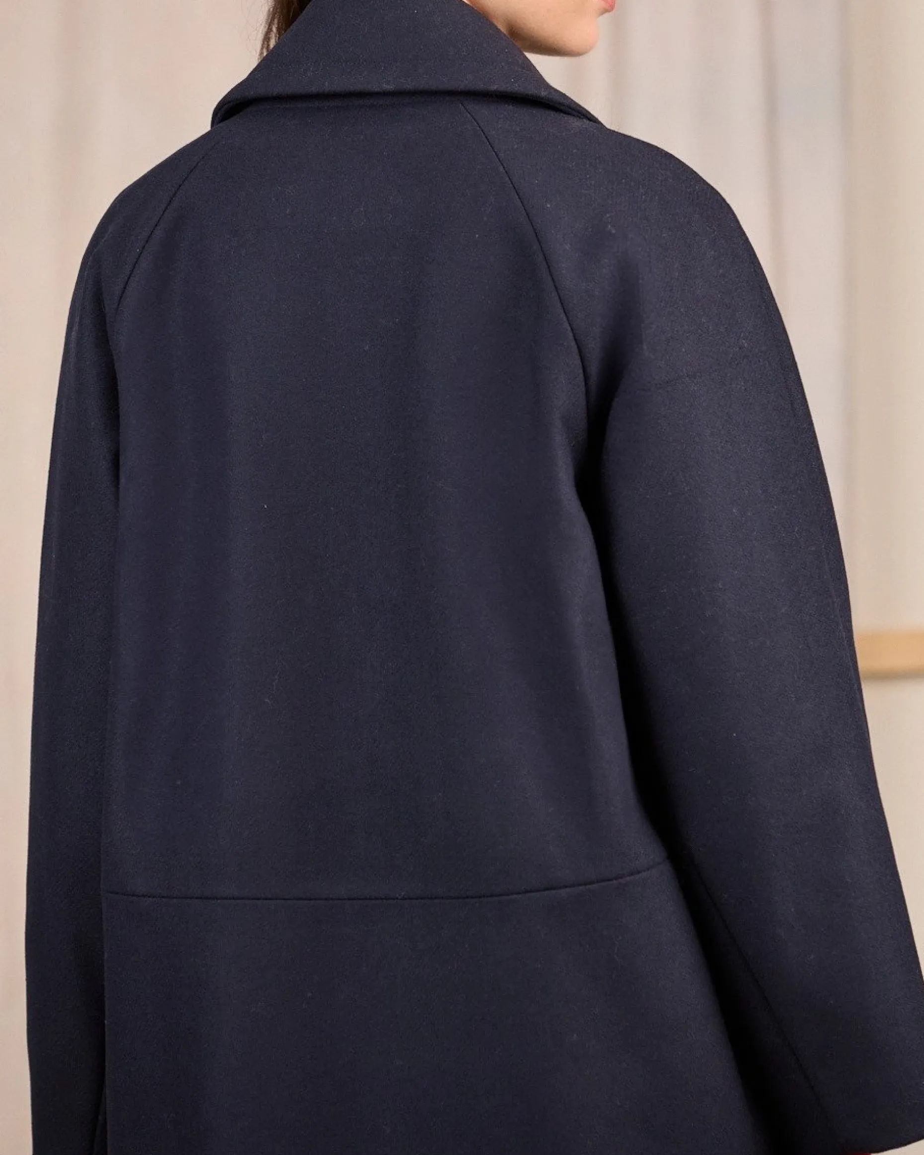 Ce manteau bleu marine pour femme est un classique intemporel ! Mêlant confort et style, il contient de la laine et présente un large col à revers et deux poches latérales. Pour une élégance sobre et sophistiquée, il se ferme au-devant par un simple boutonnage. Il s’associera à toutes vos tenues pour vous garder au chaud tout au long de la saison.