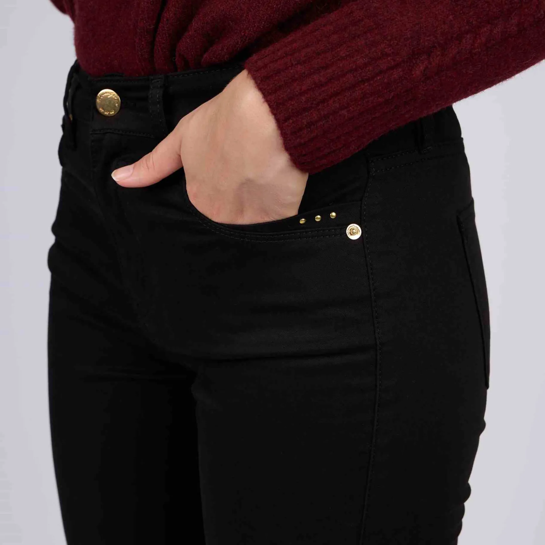 Ce pantalon 5 poches pour femme est un classique indémodable. Agréable à porter, il est orné de plusieurs poches à l’avant et à l’arrière, d’une braguette zippée avec bouton et de détails dorés. Grâce à son coloris noir, vous pourrez créer de multiples styles. Associez-le avec un haut de notre collection Mise au Green pour une tenue impeccable !
