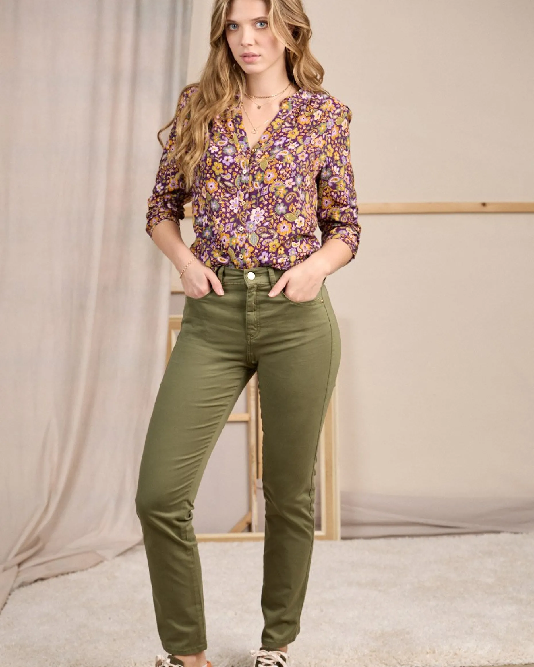 Ce pantalon 5 poches pour femme est un classique indémodable. Agréable à porter, il est orné de plusieurs poches à l’avant et à l’arrière, d’une braguette zippée avec bouton et de détails dorés. Grâce à son coloris kaki, vous pourrez créer de multiples styles. Associez-le avec un haut de notre collection Mise au Green pour une tenue impeccable !