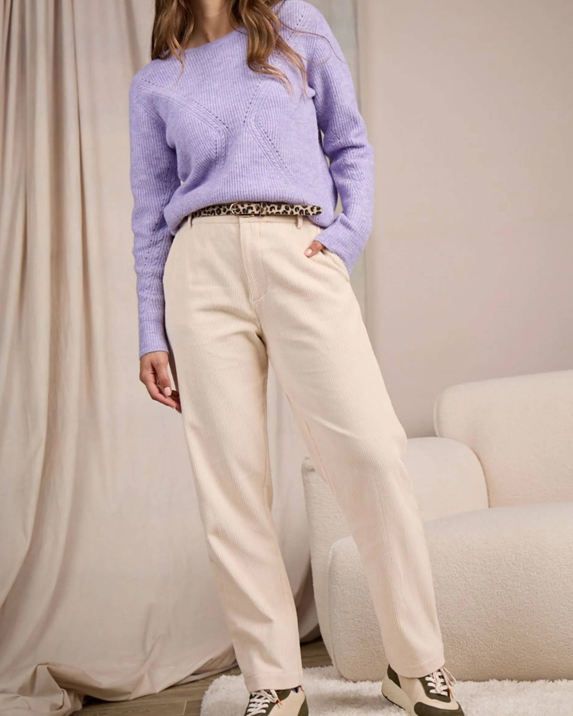 À la fois décontracté et élégant, ce pantalon chino pour femme est une pièce phare du dressing ! Cet intemporel se renouvelle avec une teinte écrue et de belles finitions. Pour en faire une pièce au goût du jour, il est doté d’un effet en velours côtelé, de poches sur le devant et de fausses poches passepoilées à l’arrière. Savant mélange de chaleur et de douceur, il est idéal pour la saison ! Craquez pour son tombé impeccable pour apporte du style à vos looks.