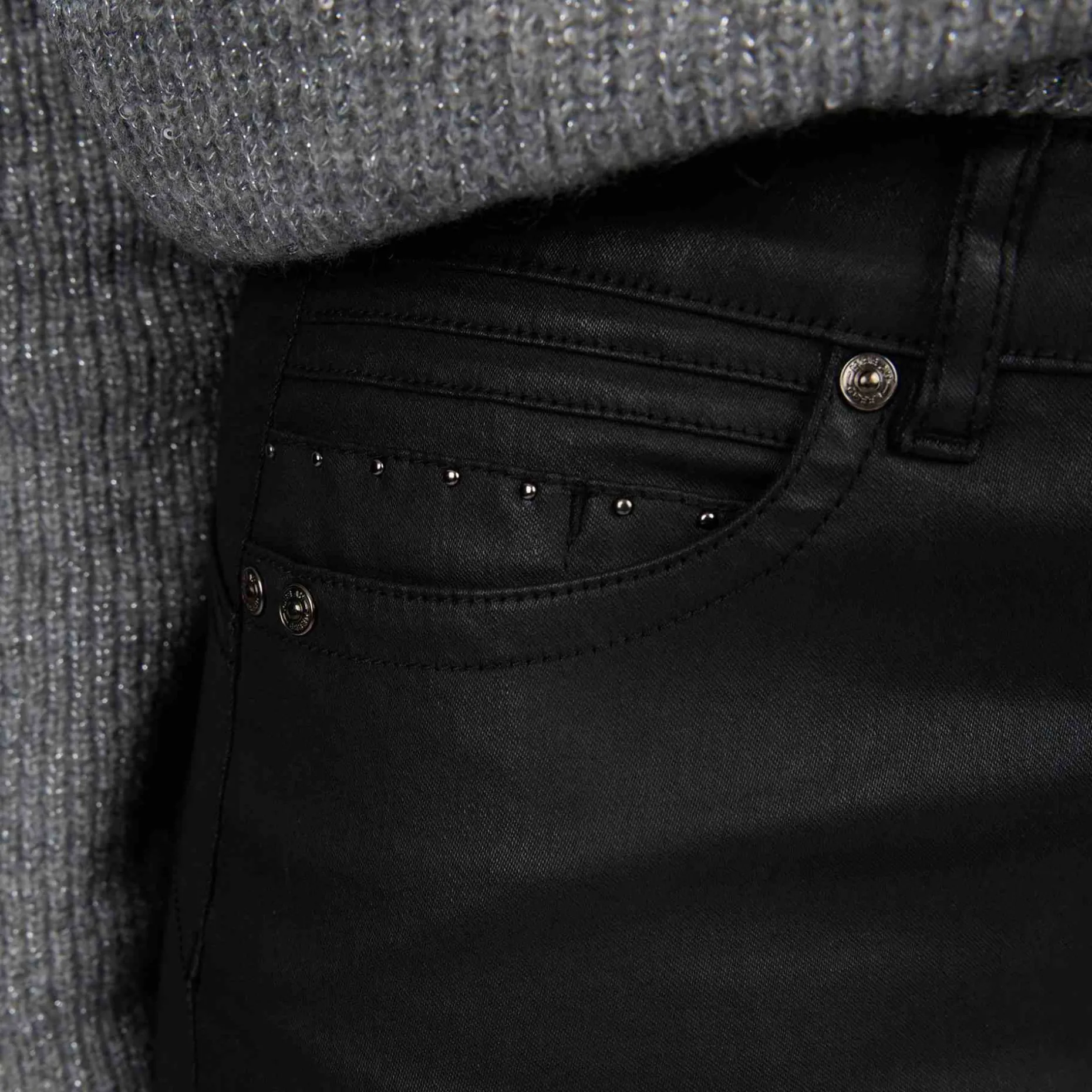 Voici un pantalon qui a du chic ! Avec son effet enduit lumineux, il est surprenant et résolument moderne. Confortable et stretch, ce modèle est réalisé en coton avec une pointe d’élasthanne pour plus d’aisance. Petit bonus : sa coupe ajustée pour marquer votre silhouette. Des détails de clous au niveau des poches et un jacron « 3 vaches » complète son design très tendance.