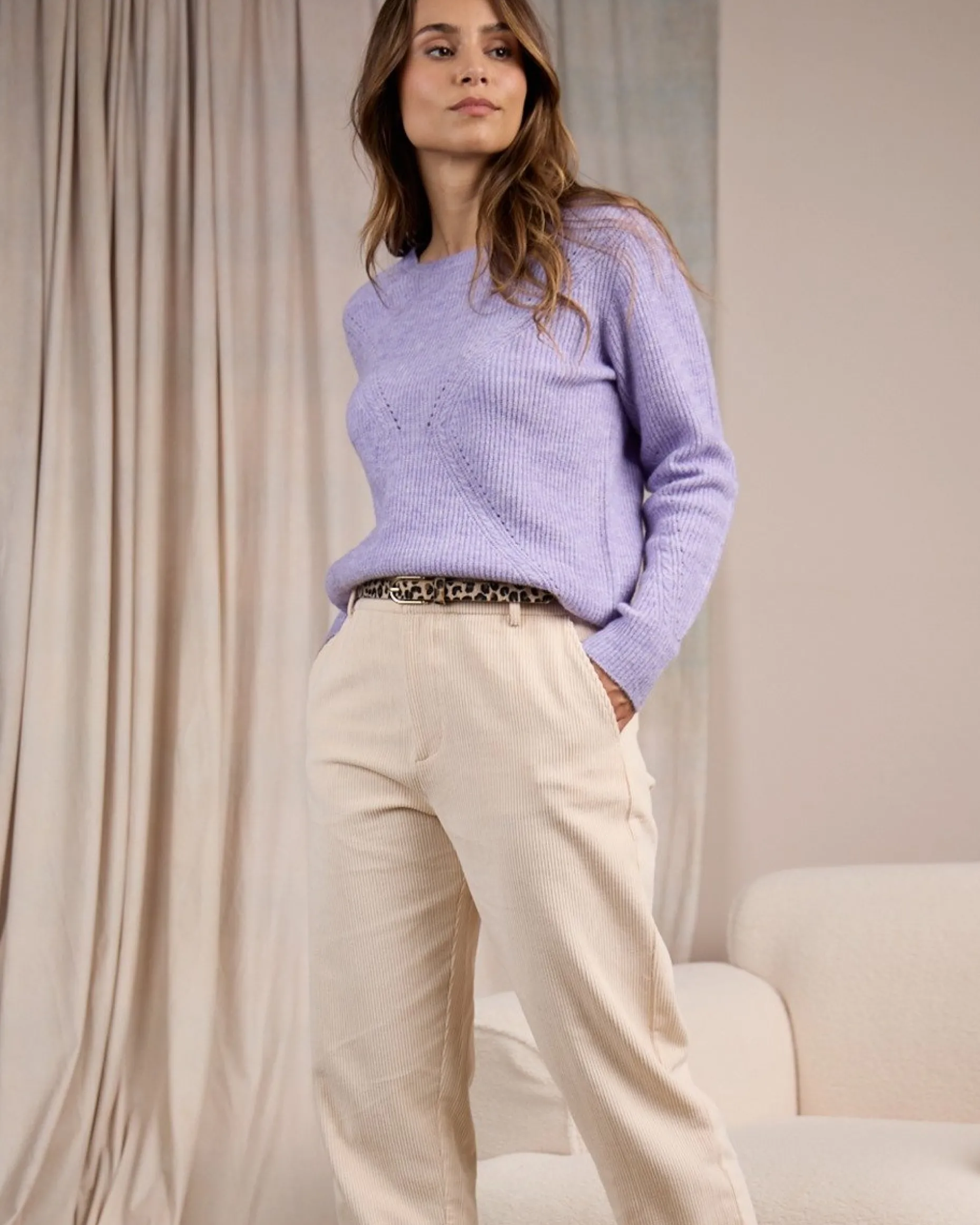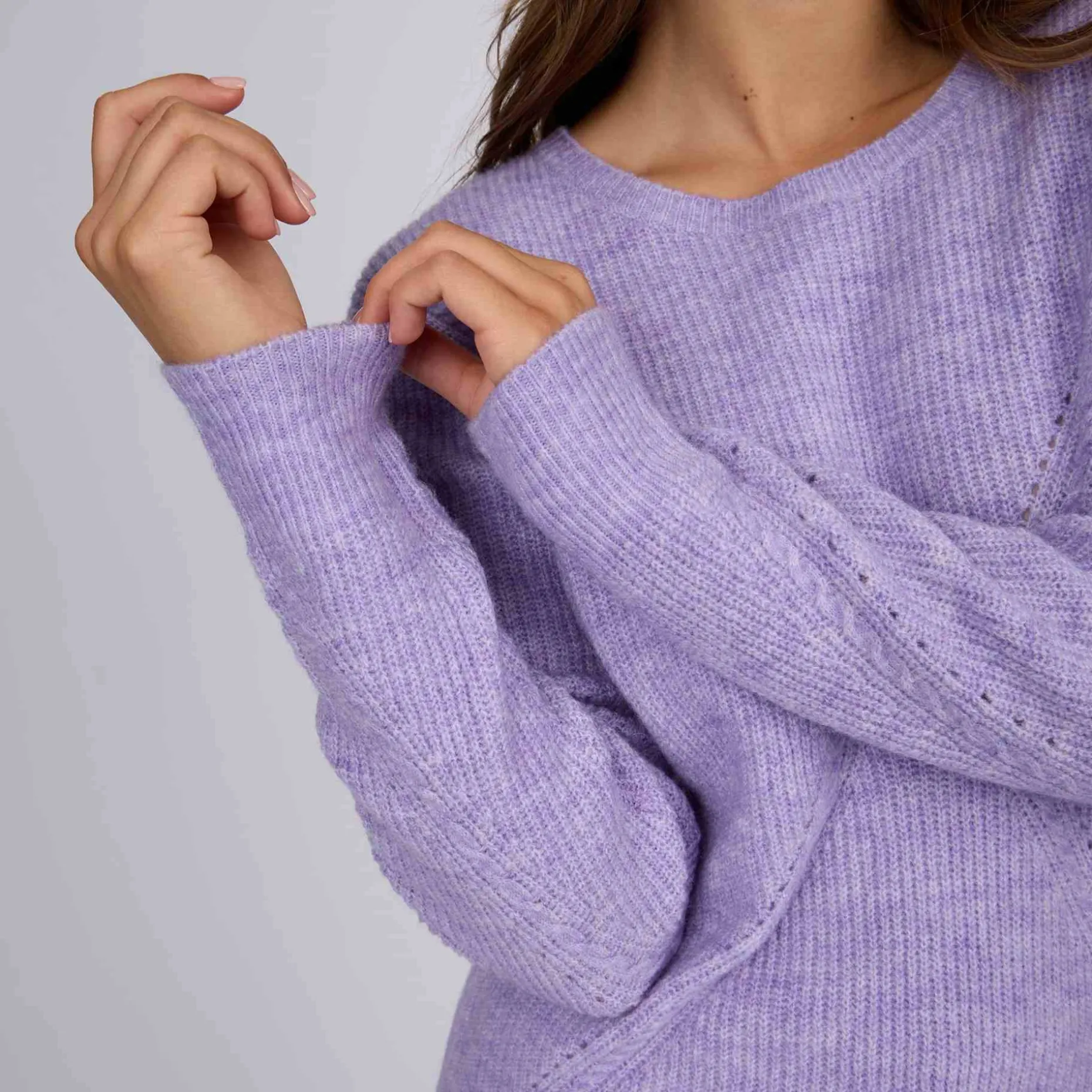 Avec ses élégants détails ajourés et sa teinte lilas pleine de fraîcheur, ce pull à manches longues pour femme illumine votre quotidien ! Réalisé à partir de polyester, d’acrylique et une touche de laine, il procure chaleur et confort pendant vos journées. Son design doux est complété par un col rond et des finitions bords-côtes à la base, au col et aux poignets. Succombez à cette pièce chaleureuse !