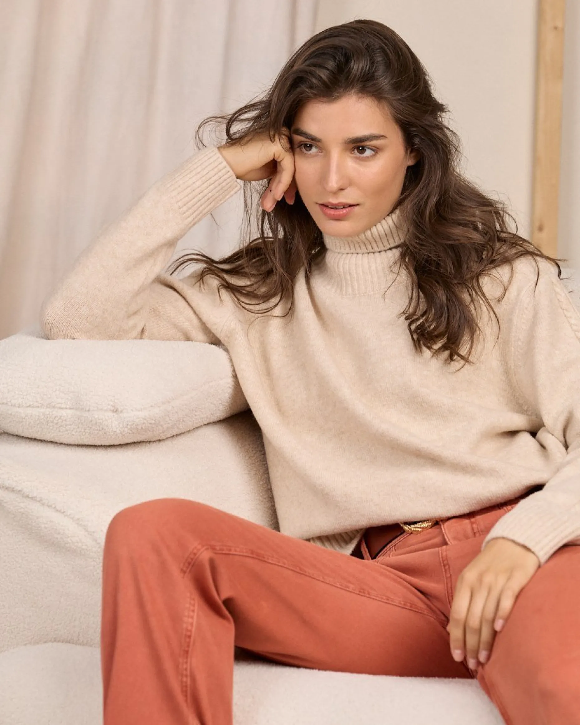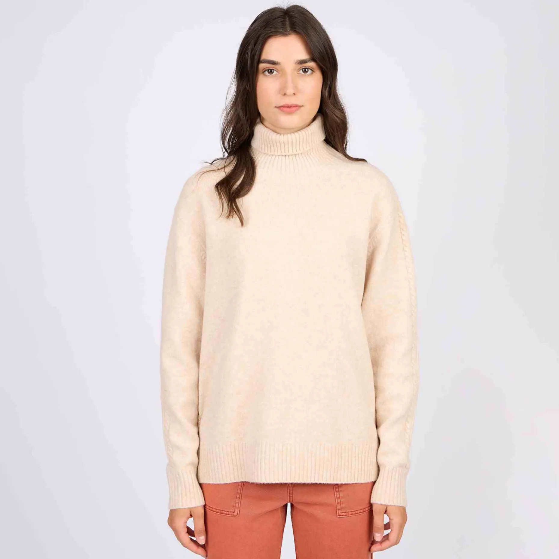 L’heure est venue de ressortir les pulls ! Pour vous tenir chaud cette saison, adoptez ce pull à col roulé pour femme. Cet indispensable du dressing est confectionné dans une maille cocooning. Il se distingue par son coloris uni beige et ses détails côtelés au niveau du col, des poignets et de la base. Gage de confort, son col montant protège votre nuque du froid tout en soulignant les traits de votre visage.
