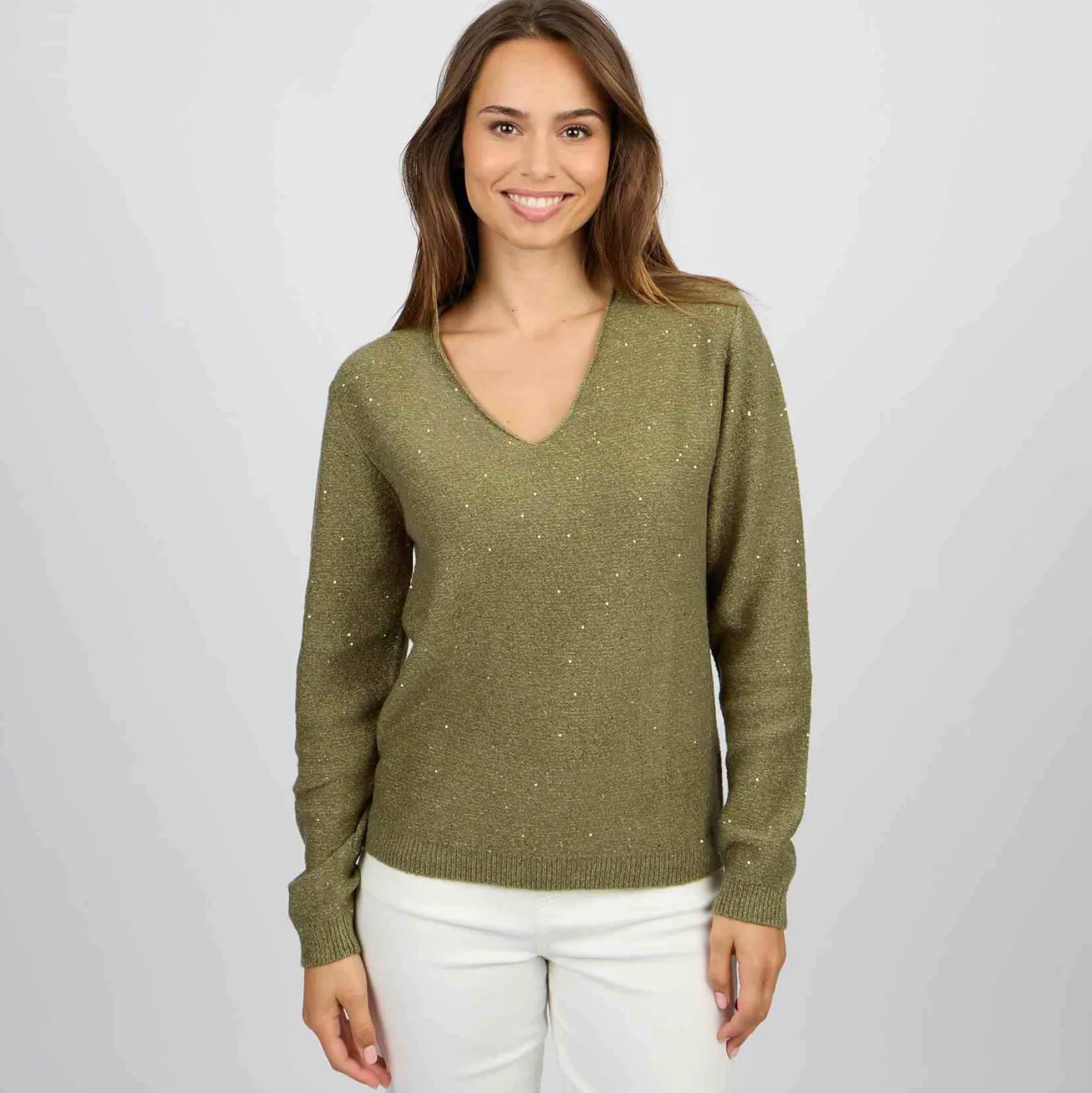 Véritable plaisir pour les yeux, ce pull à col V fait pétiller vos tenues ! Offrant une sensation douce sur la peau, il est confectionné dans une maille à base d’acrylique. Sa teinte kaki, son tissu fluide et des détails côtelés font de ce pull un modèle auquel il est difficile de résister ! Portez-le facilement pour un style sophistiqué et glamour. Une plaquette dorée Mise au Green est cousue à l’arrière.