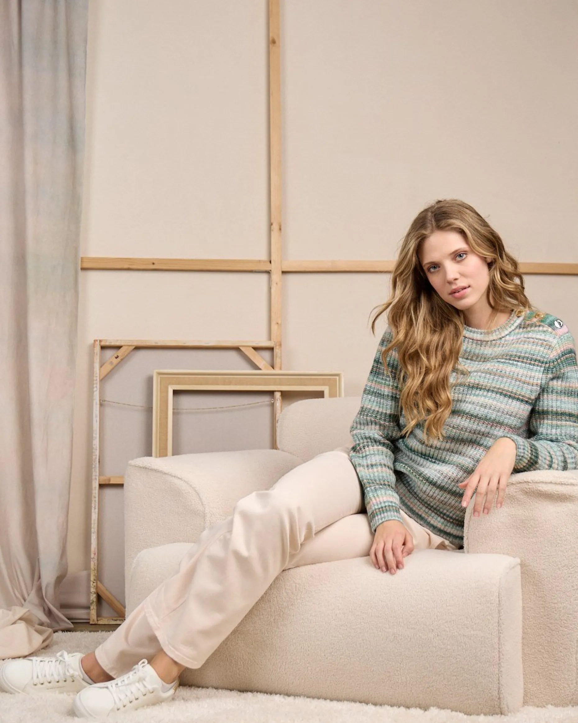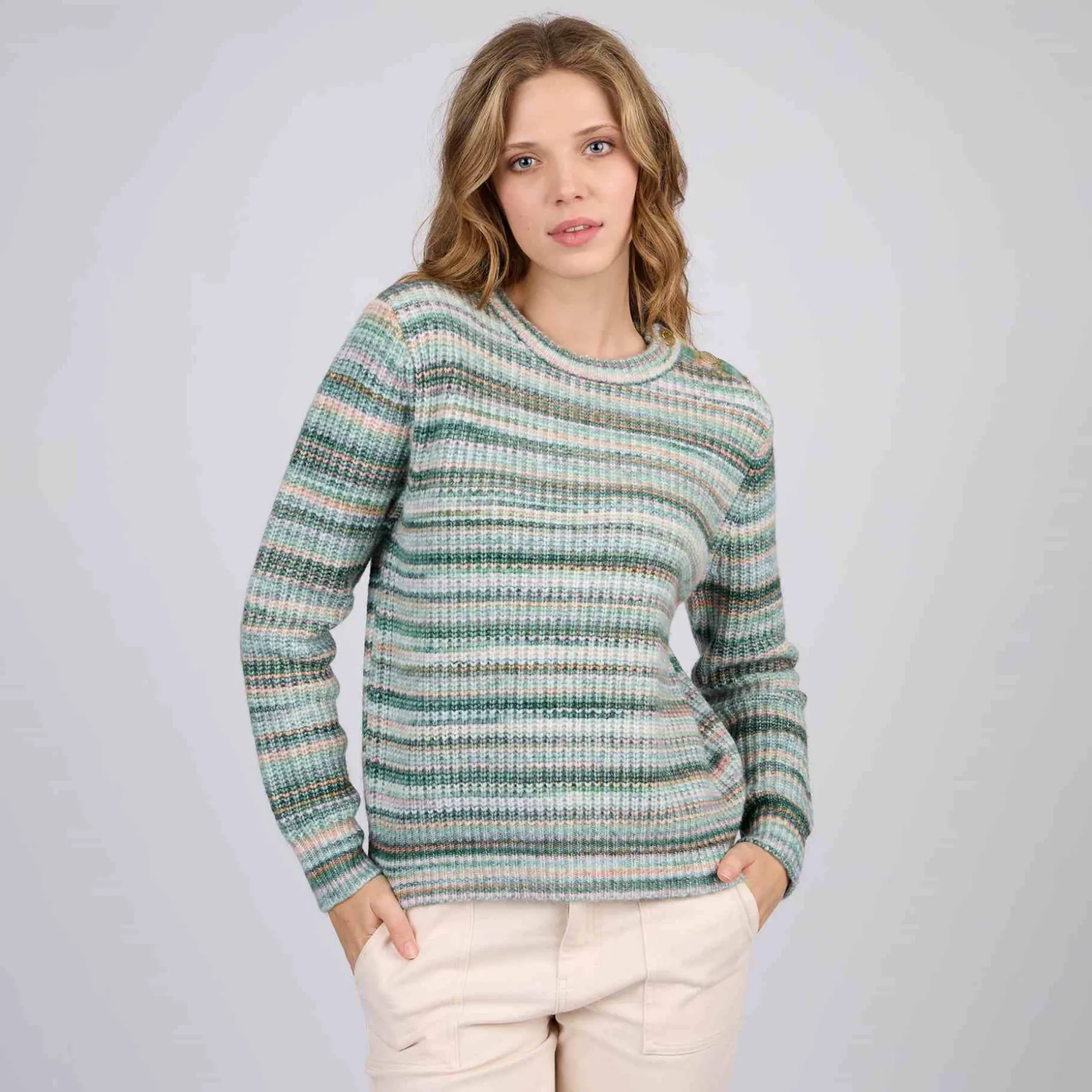 Faites le plein de douceur avec ce pull à manches longues pour femme. Il est conçu avec du polyester, de l’acrylique et de la laine pour offrir une sensation confortable et duveteuse. À la fois décontractée et facile à porter, cette pièce est déclinée dans une teinte verte avec des rayures tendances. Un col rond et une plaquette Mise au Green apportent la touche finale. On dit définitivement oui à ce modèle de saison !