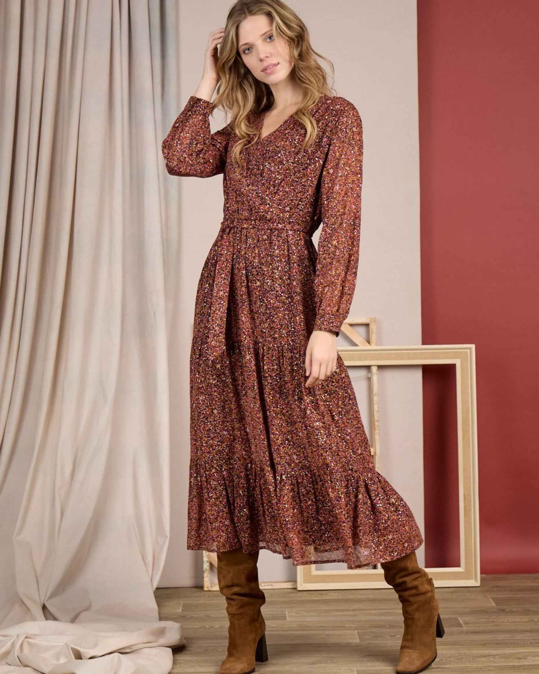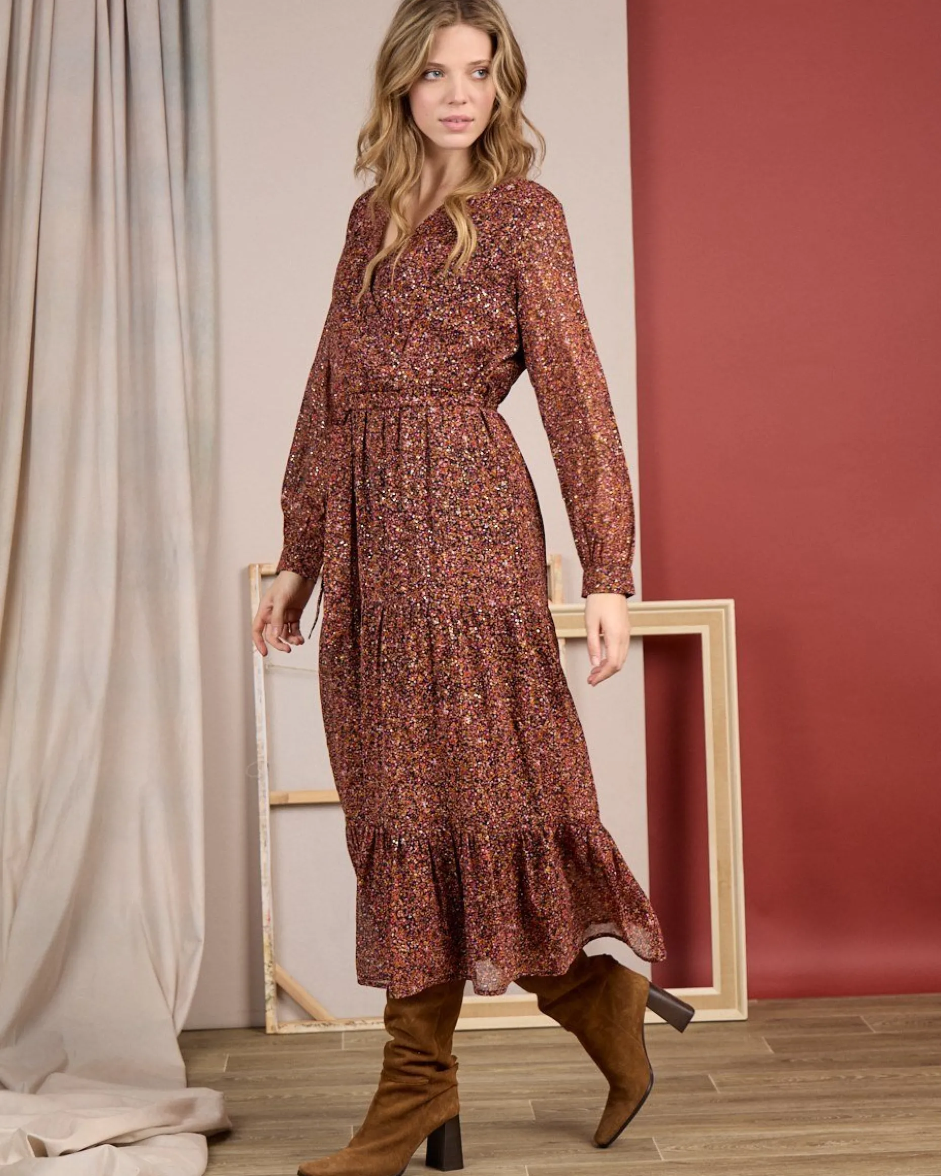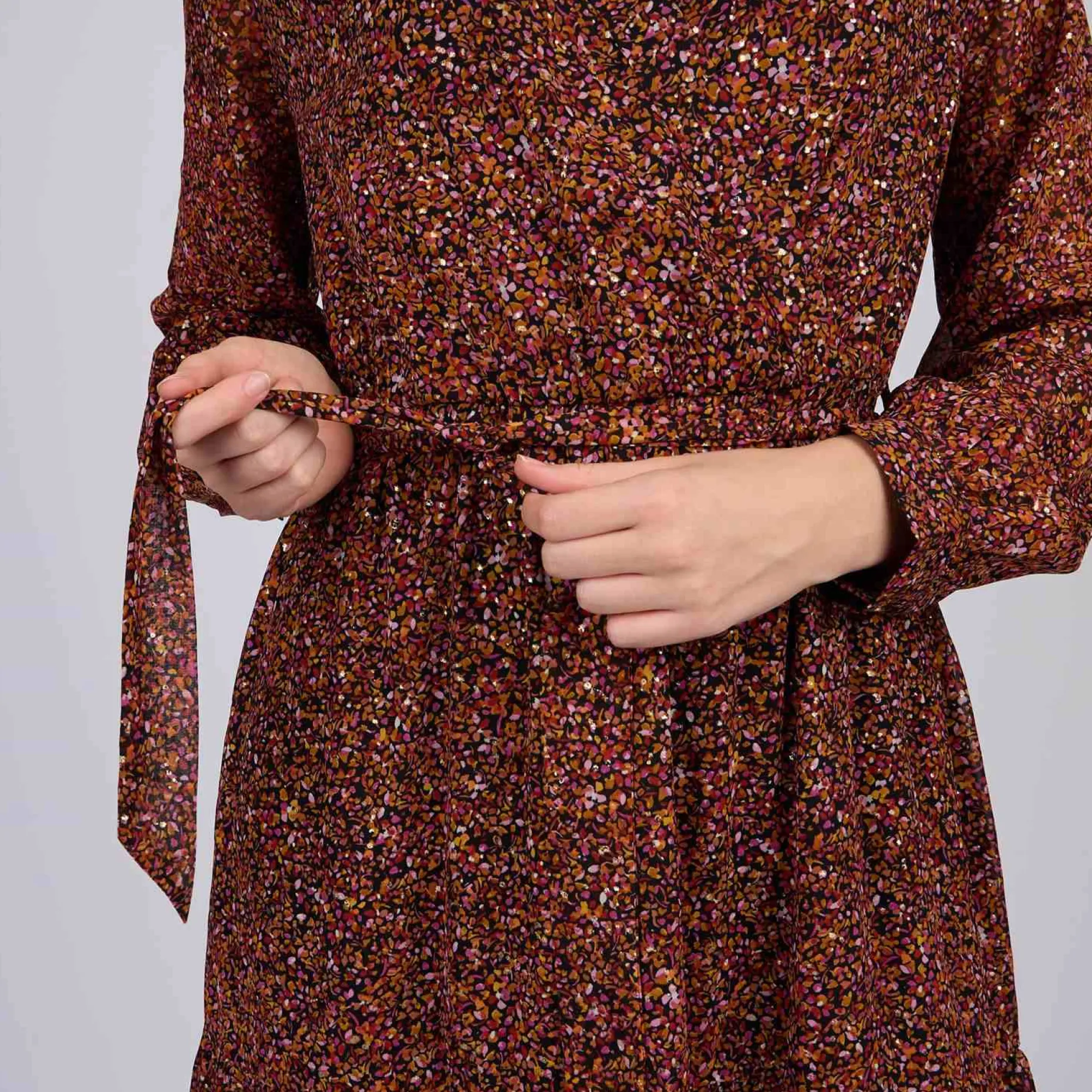 Élégante, fluide, facile à porter… Les atouts de cette robe noire à manches longues sont nombreux ! Des volants à la base et des motifs vibrants ajoutent une touche de style indéniable à cette pièce. Elle est complétée d’une encolure en V et d’une ceinture à nouer à la taille. Pour offrir une sensation de légèreté et de confort en toutes circonstances, ce modèle est conçu en viscose.