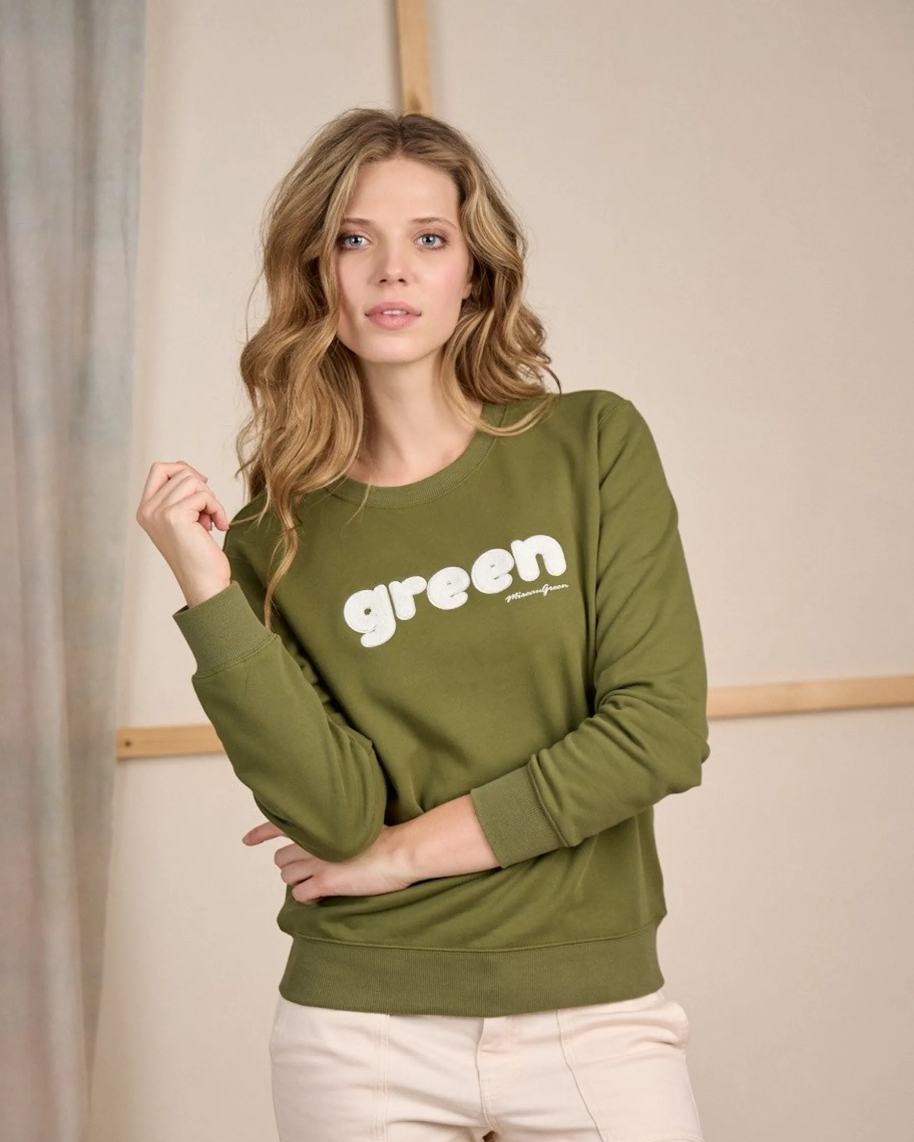 Allure confortable et décontractée avec ce sweat kaki à manches longues ! Ce modèle féminin au design moderne se démarque par son col rond, ses bords côtelés et sa broderie bouclette. Parfait pour la saison, il est majoritairement fabriqué en coton. Adoptez ce basique du dressing et associez-le avec tous vos pantalons préférés !
