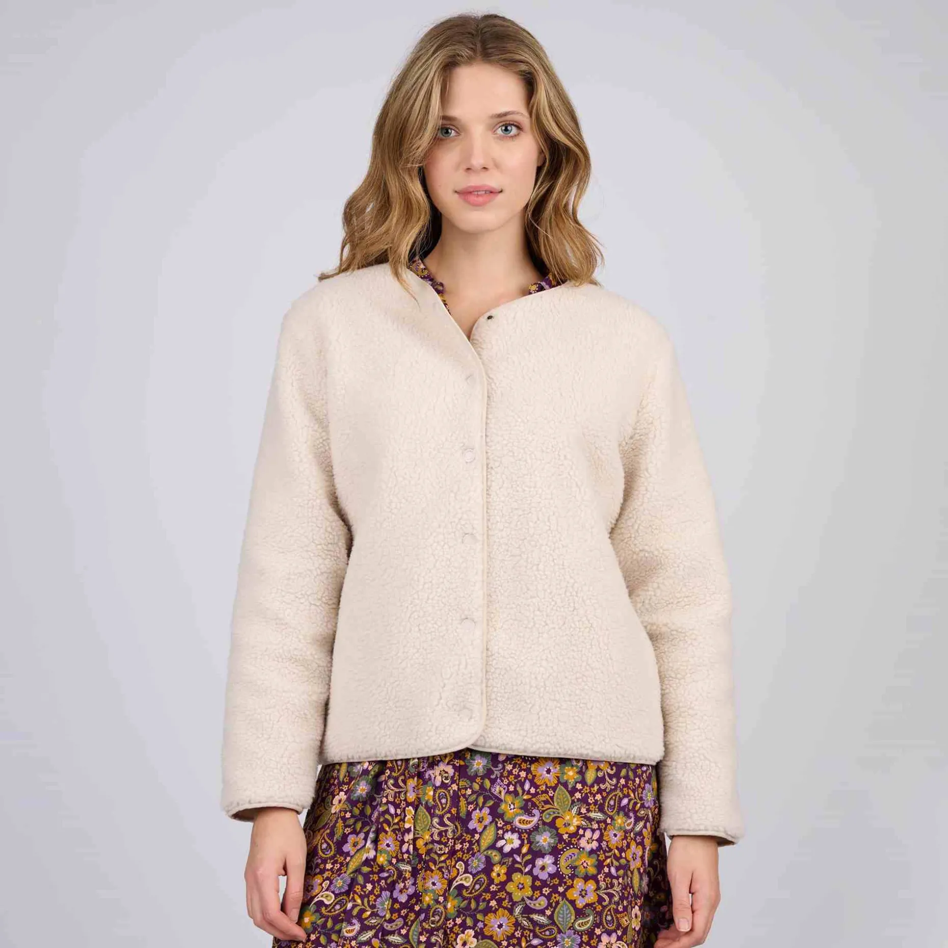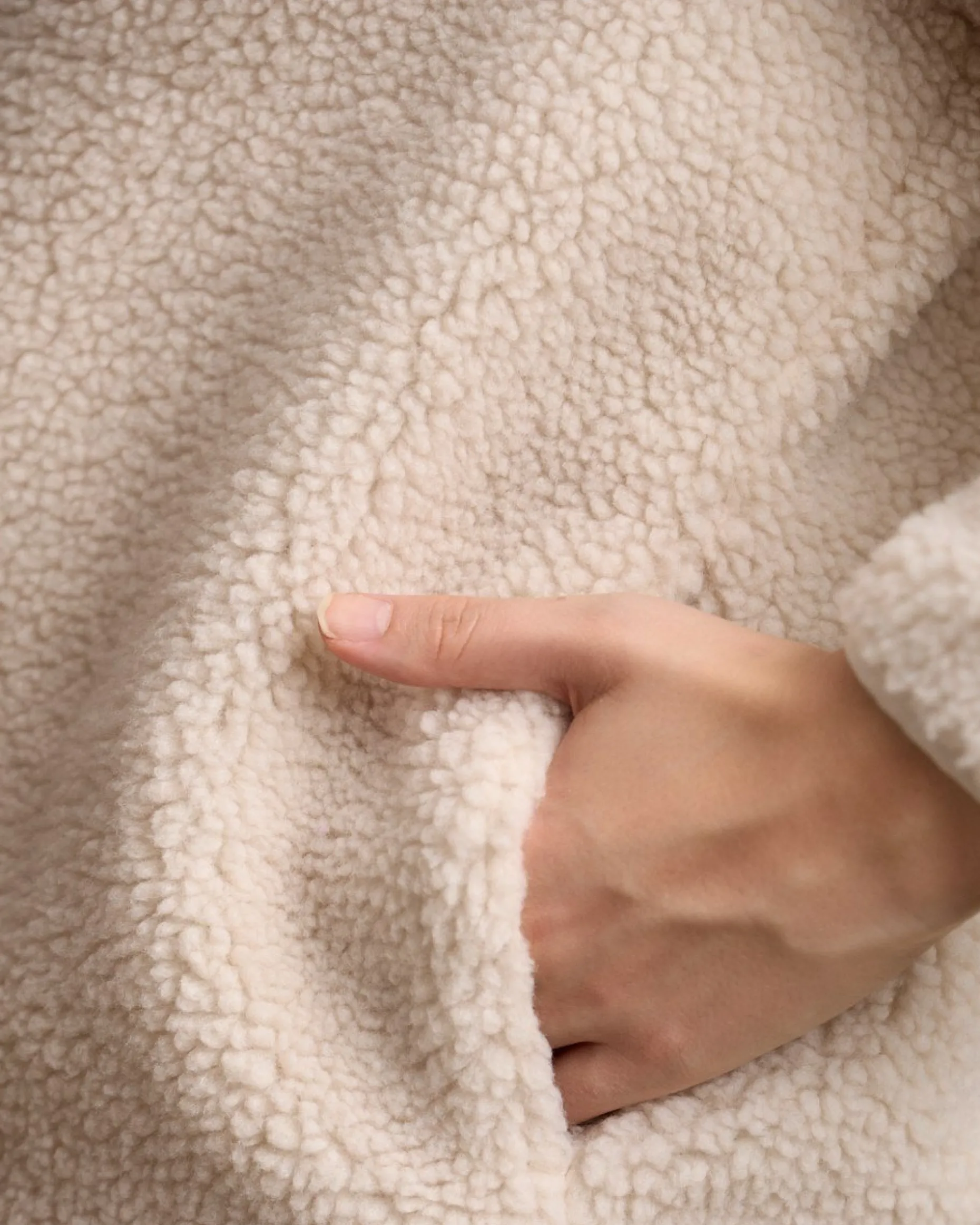 Une veste polaire pour femme est indispensable pour vous protéger du froid ! Pour vous accompagner au quotidien, optez pour ce modèle chaud et confortable. Réalisée dans une matière imitation mouton au coloris écru, elle complète vos tenues avec élégance. Son design minimaliste et versatile est complété par une fermeture boutonnée et deux poches latérales. Pour être à l’aise chez vous ou pendant vos sorties, elle sera votre meilleure alliée !