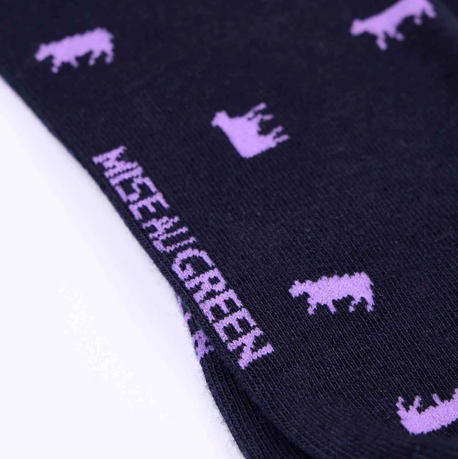 Animées de petites vaches, ces adorables chaussettes vous tiendront compagnie au quotidien ! Fabriquées en coton, polyamide et élasthanne, elles garantissent un confort optimal à vos pieds. Cet accessoire est décliné avec un joli fond parme pour apporter une touche de douceur à votre tenue. Craquez pour son design exclusif !