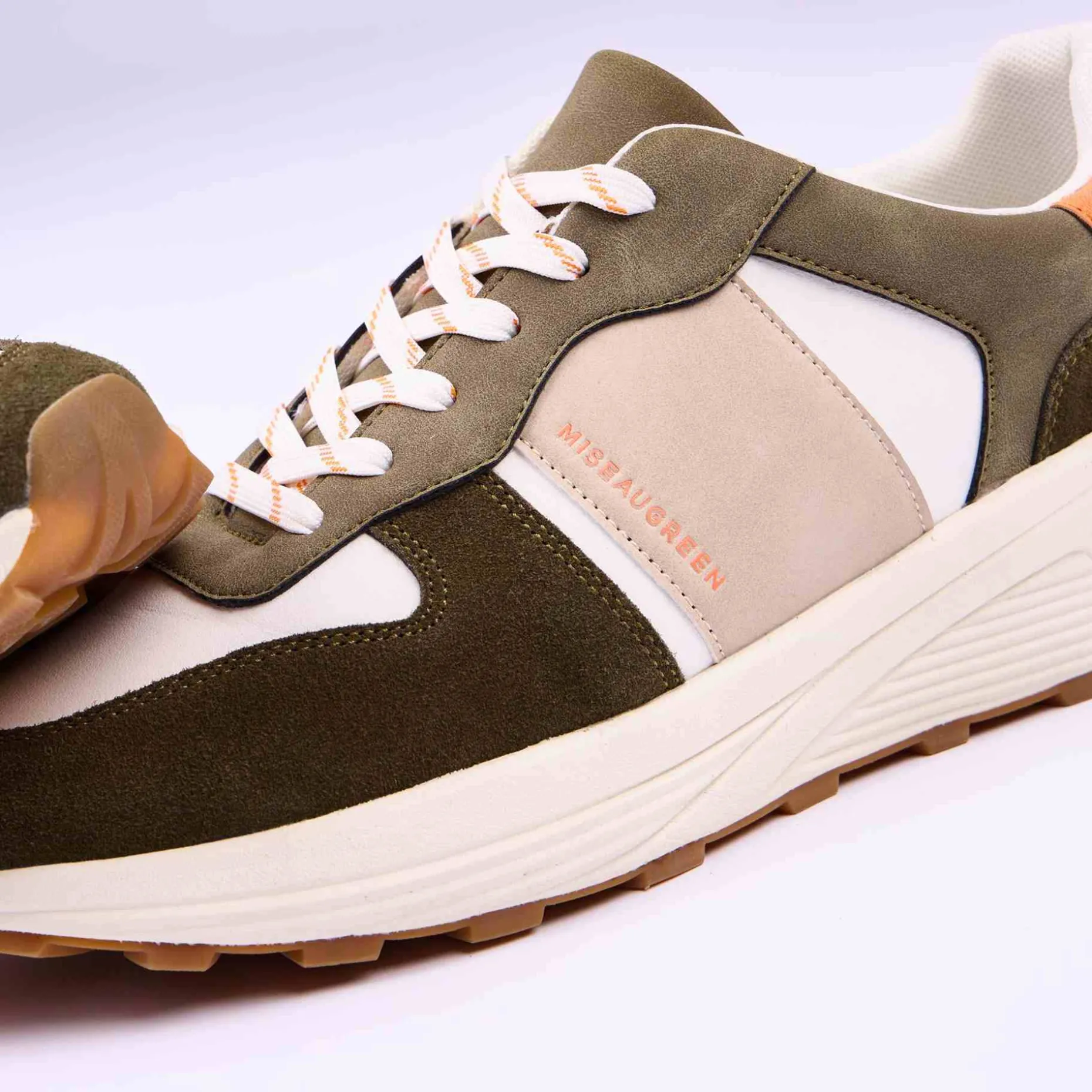 Pour des tenues stylées et confortables au quotidien, enfilez ces baskets basses ! Très polyvalentes, ces chaussures s’adaptent à tous les styles. Coup de cœur pour leur design décontracté et les empiècements kaki en suède. Elles arborent l’inscription « Mise au Green » sur le côté.