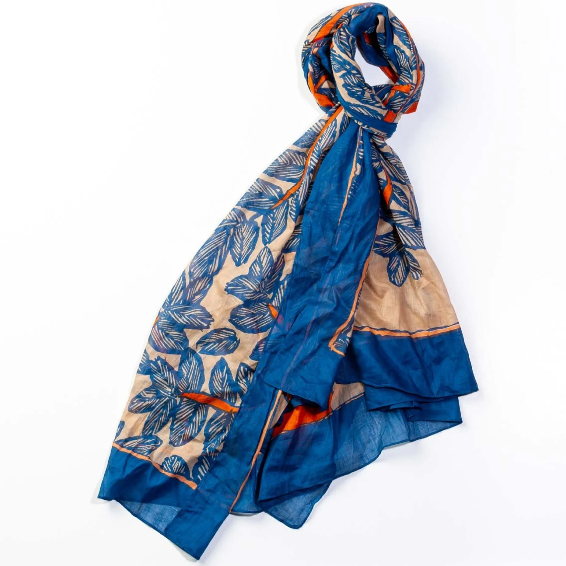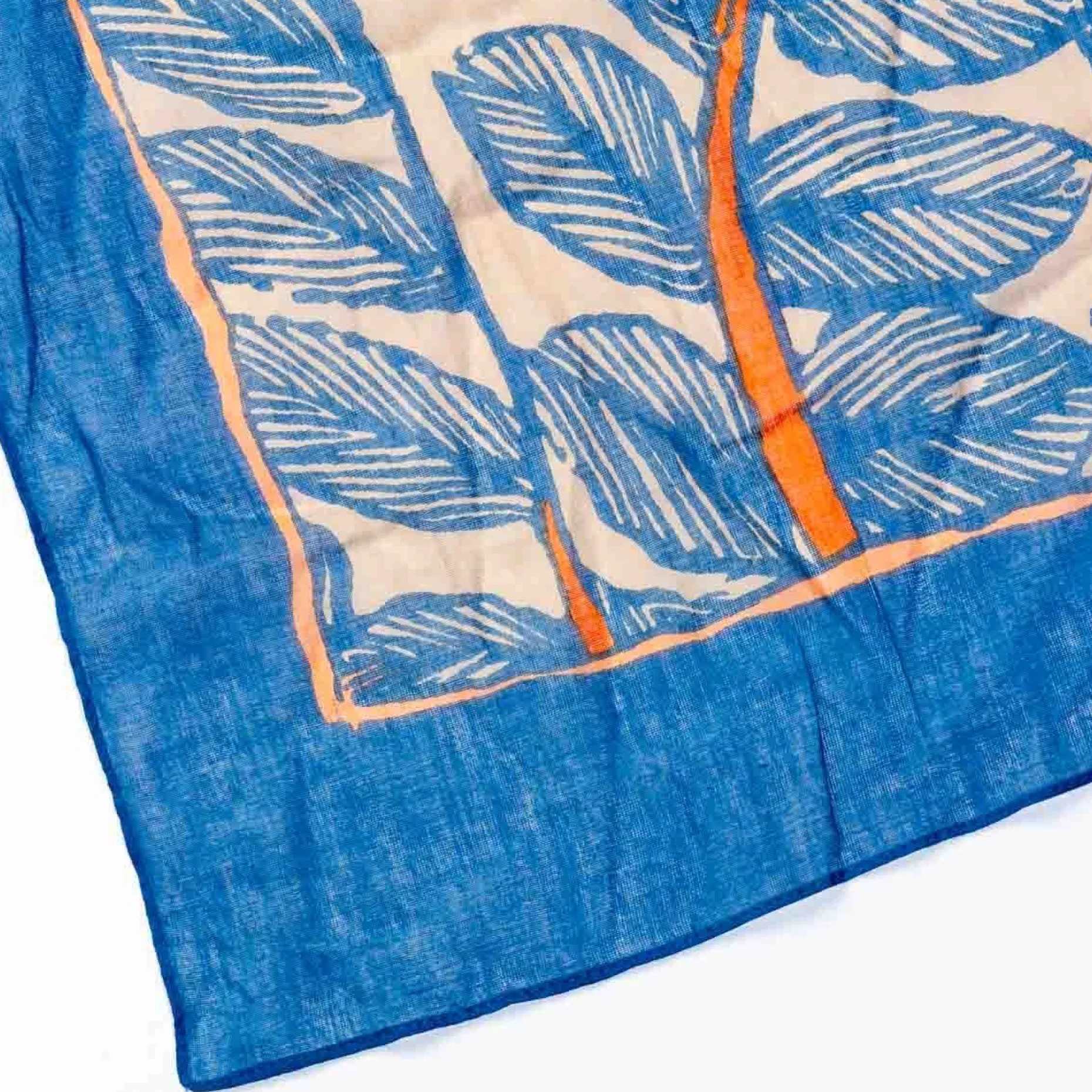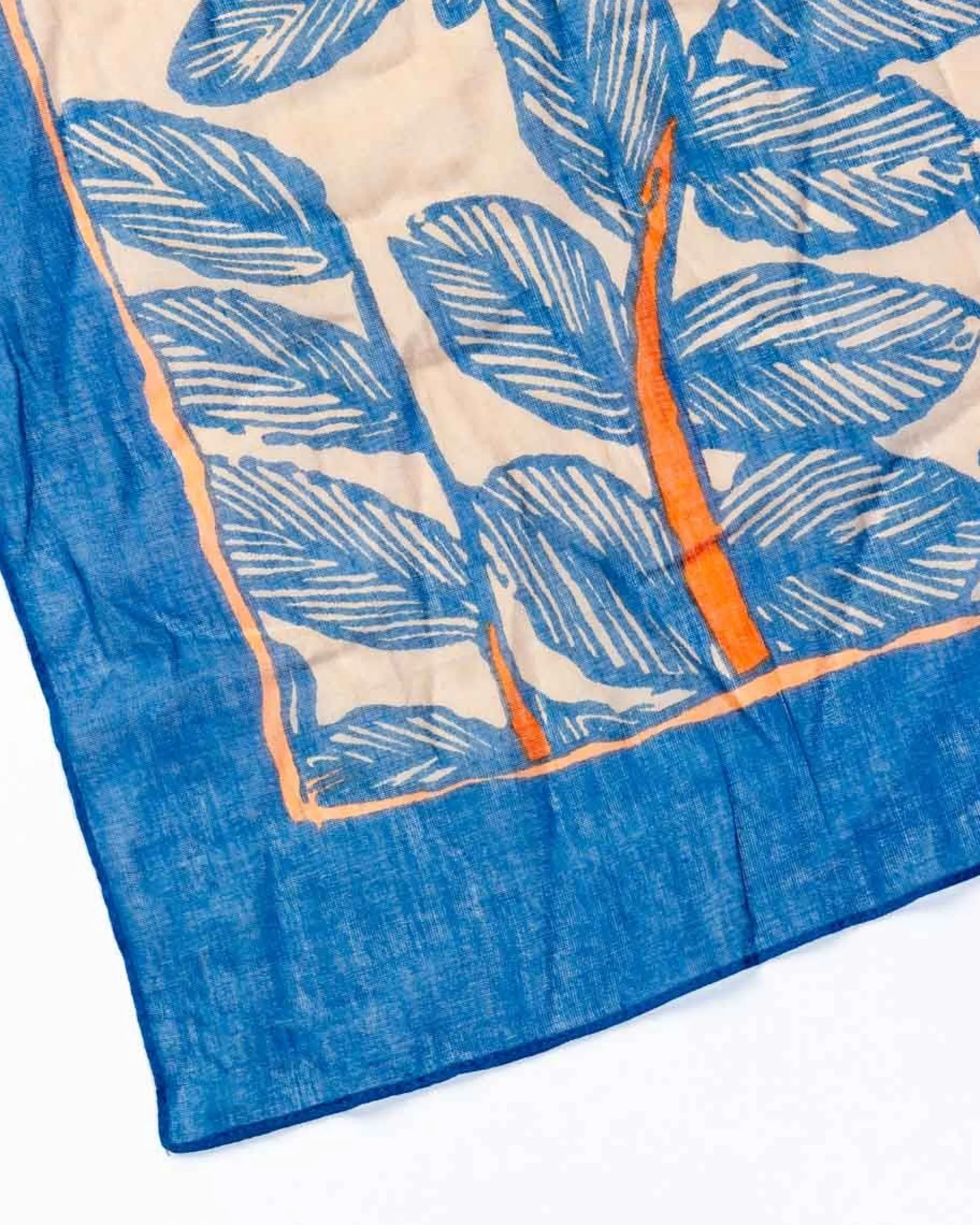 Ce chèche se pare d’un imprimé graphique exclusivement développé pour notre marque française. Ses teintes bleues et orange et ses motifs feuillages apportent à ce foulard masculin une touche de fantaisie à la fois estivale et originale. Avec un jean, un bermuda ou un chino, ce chèche vous promet d’attirer tous les regards. Pour plus de confort et de légèreté cet accessoire est intégralement confectionné en coton de qualité supérieure. Noué avec soin ou nonchalamment glissé sur un t-shirt, ce chèche s’impose comme la touche finale de vos looks printemps-été.