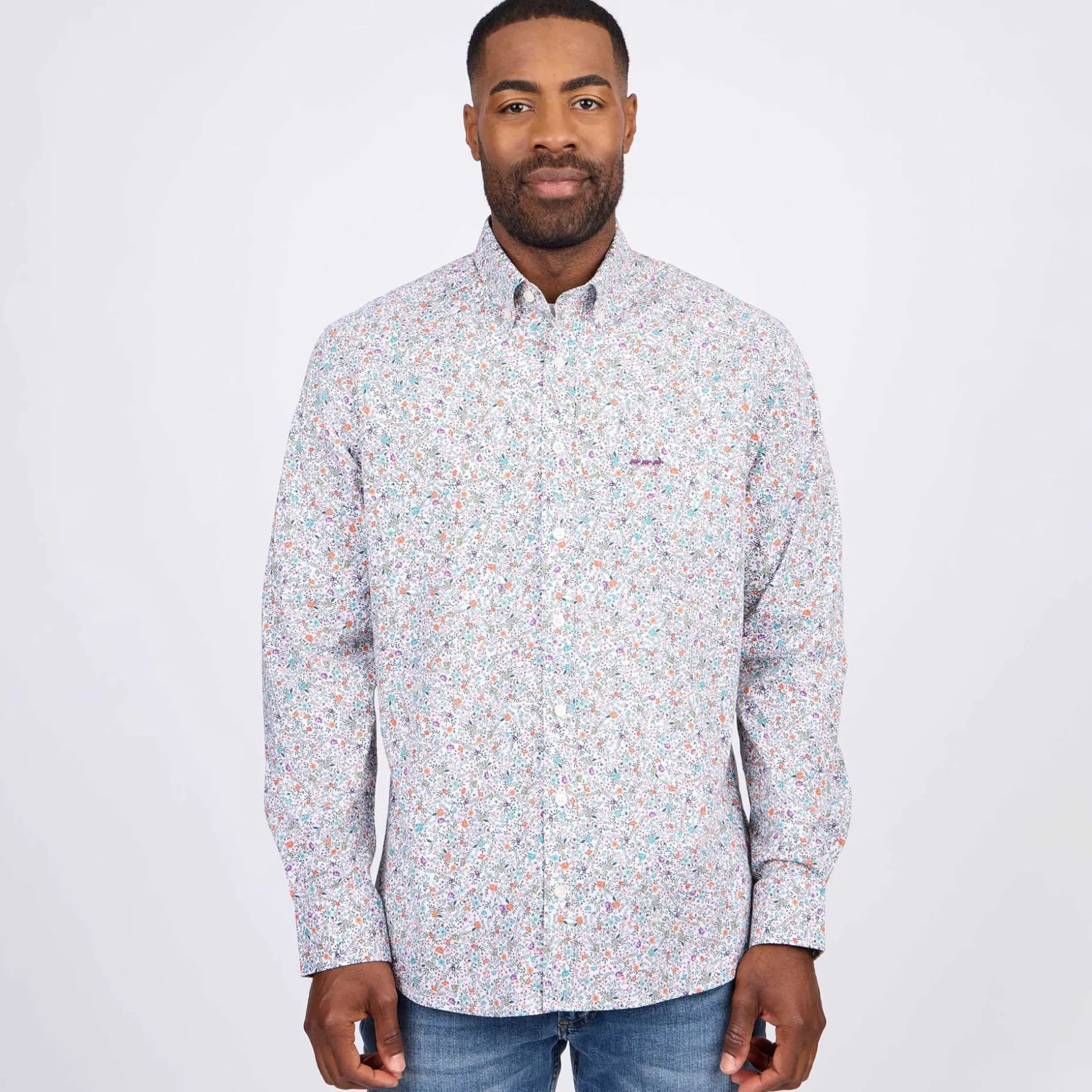 Des motifs floraux et une coupe droite confortable caractérisent cette chemise blanche à manches longues. Confectionné en coton, ce modèle pour homme assure aisance, douceur et confort. Avec son design fantaisie, le style est au rendez-vous pour rehausser vos tenues vestimentaires ! Enfilez cette pièce tendance et associez-la avec un jean pour une allure réussie.