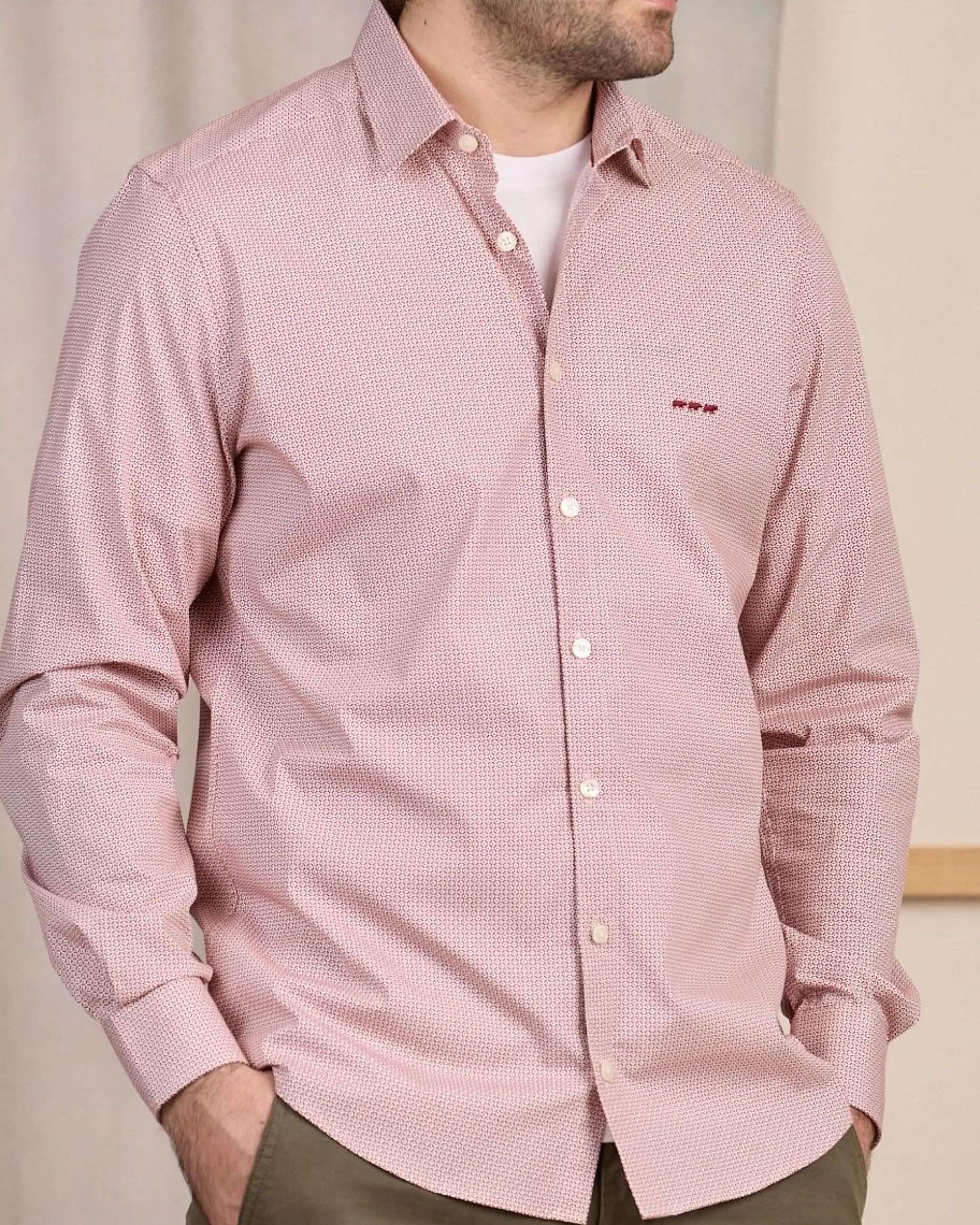 Pour aller travailler ou pour sortir, démarquez-vous avec cette chemise pour homme à manches longues. Ce modèle exclusif est réalisé en coton avec de l’élasthanne. Aisance et confort garantis au quotidien ! Pour un style chic qui ne laissera personne indifférent, il comporte un imprimé à micro-motifs et un col à pointes boutonnées avec boutons cachés. Apportez une touche de fantaisie à votre vestiaire en enfilant cette pièce signée Mise au Green.