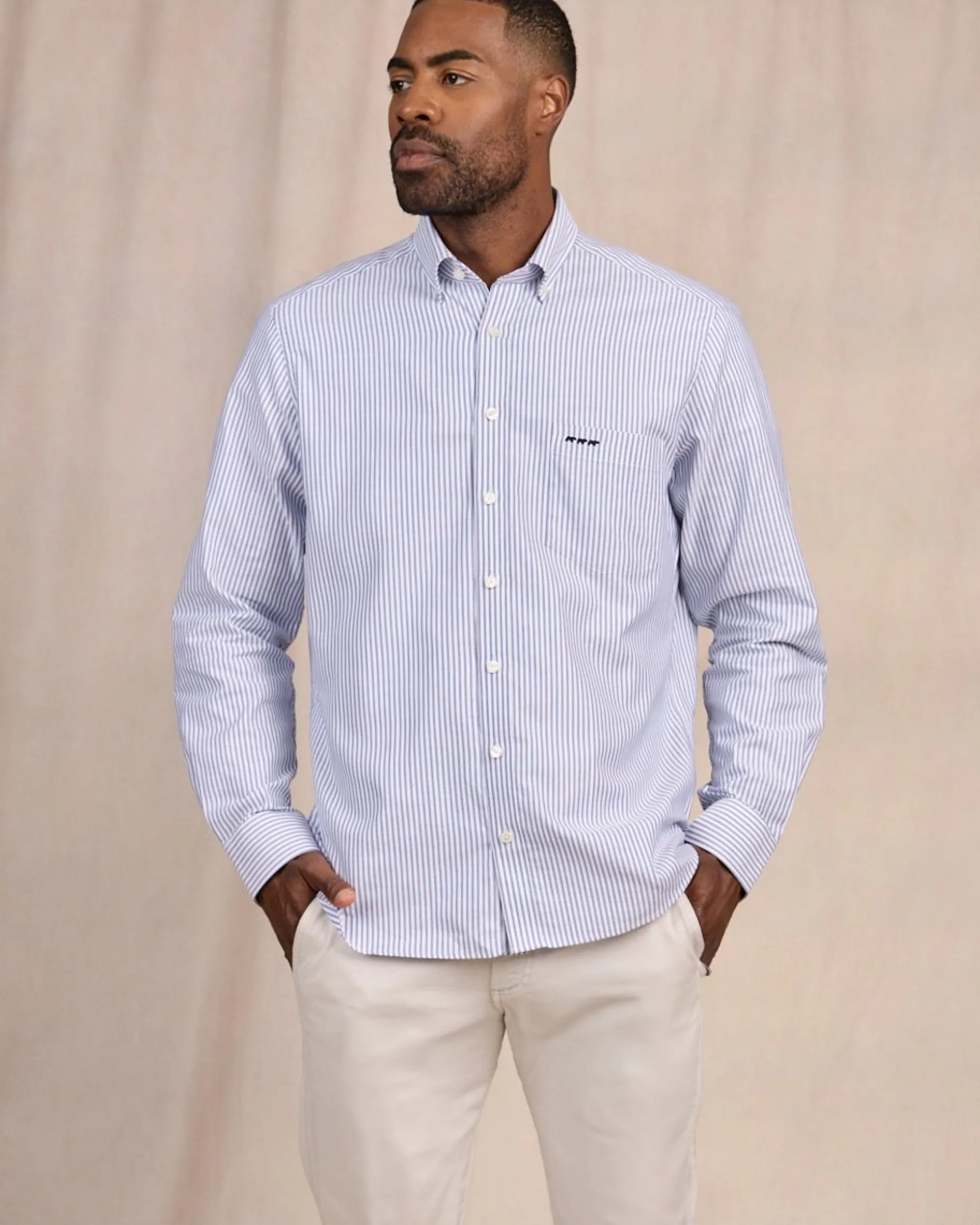 Promesse d’une allure chic, cette chemise à rayures est un basique ! Son design tendance et polyvalent se porte tout au long de l’année pour rehausser vos tenues. On aime ses rayures bleues, sa poche sur la poitrine et son logo brodé et contrasté « 3 vaches » pour un supplément de style. Soyeux et agréable à porter, ce modèle est réalisé 100 % en coton. Votre vestiaire va l’adorer !