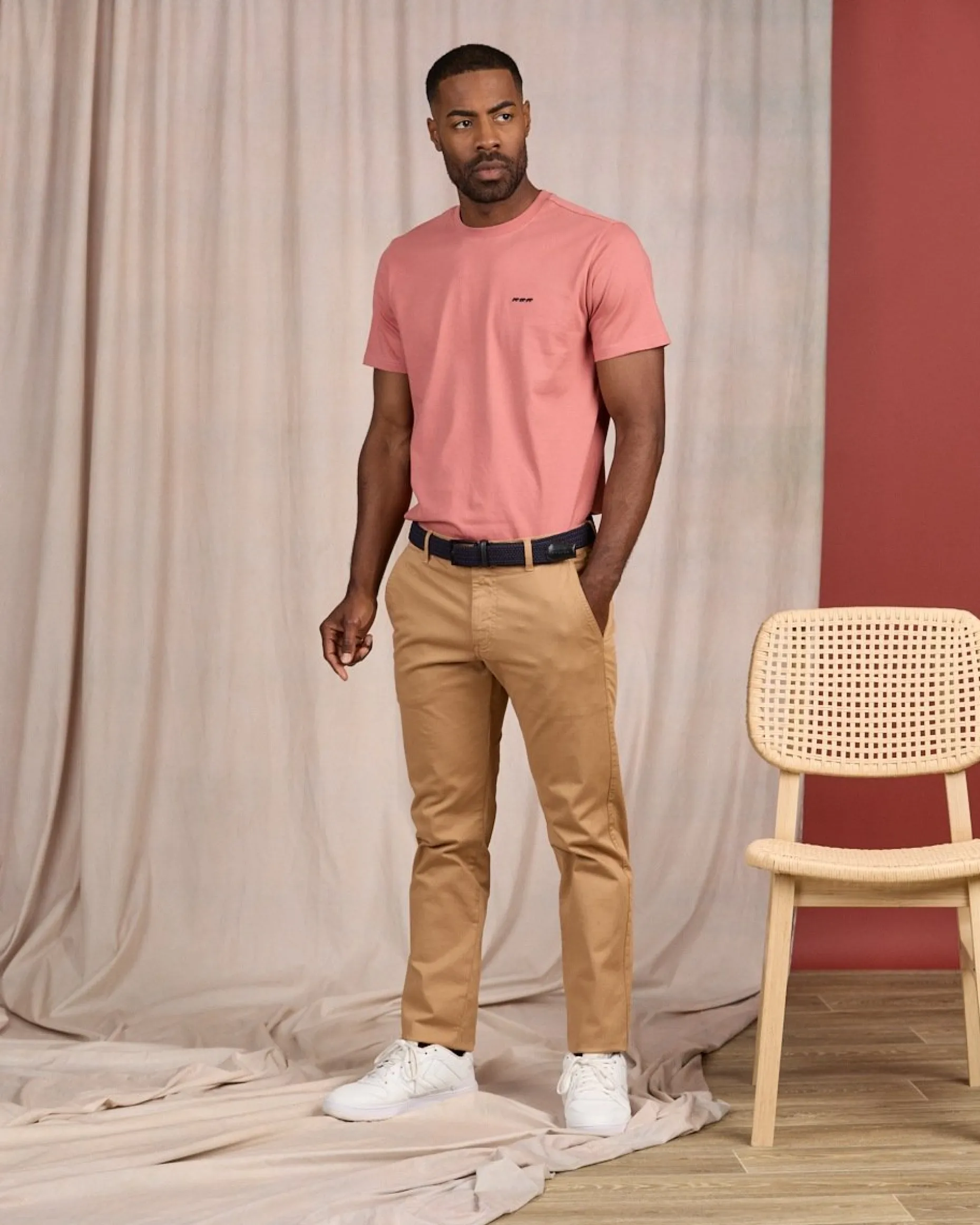 Réalisé en coton, ce pantalon chino camel vous suit au quotidien pour un style chic et décontracté. Les détails qui font la différence ? Sa taille élastiquée pour un confort accru et ses 5 poches. Des poches à l’avant, des poches passepoilées à l’arrière et des passants pour ceinture complètent ce modèle iconique. Avec sa coupe soignée, il épouse parfaitement la silhouette et peut être porté dans une variété d’occasions. C’est l’essentiel qu’il vous manquait pour une allure sophistiquée !
