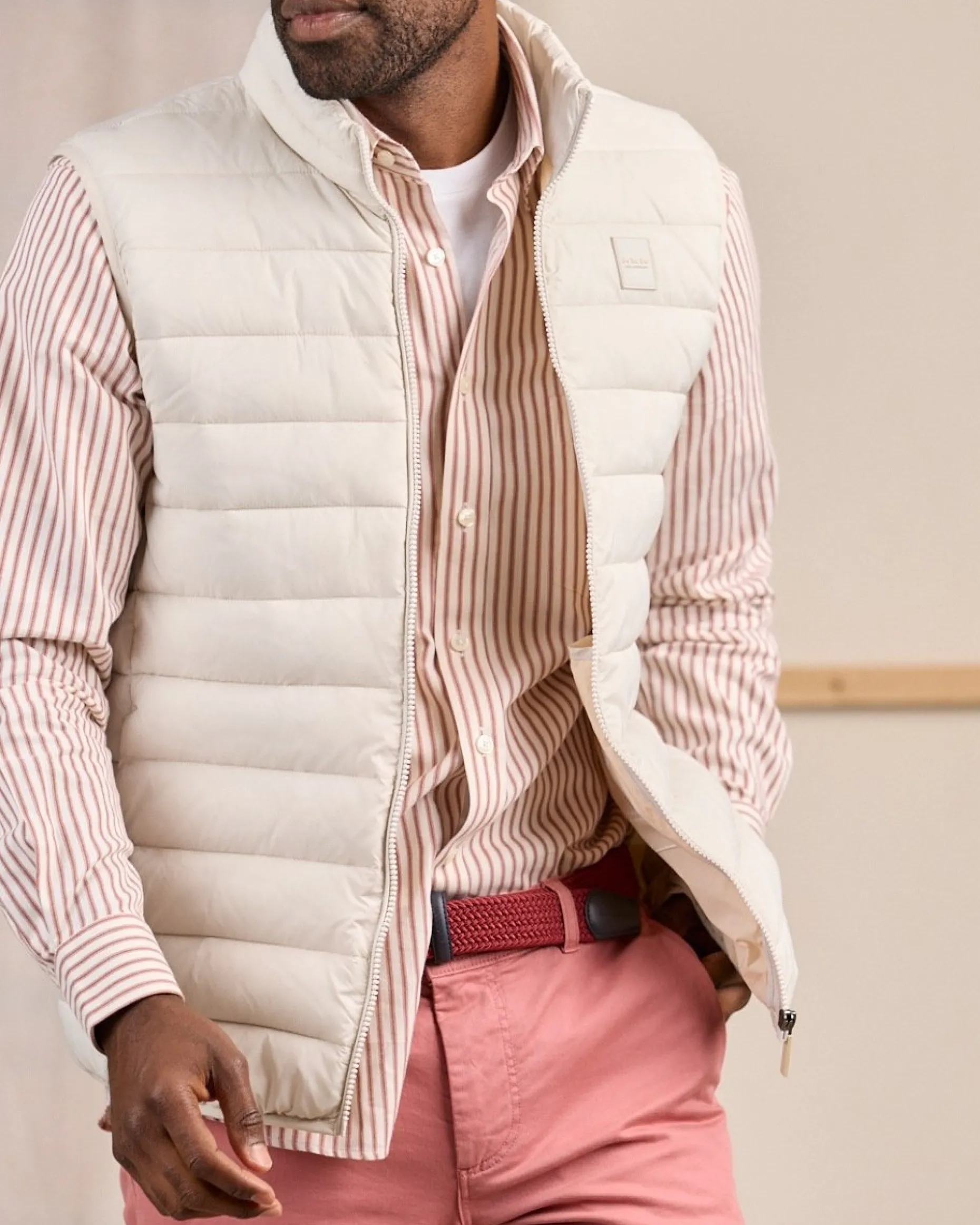 Mise au Green réinvente la doudoune sans manches avec du polyester recyclé et un coloris uni blanc cassé ultra tendance. Facile à porter, elle s’enfile aussi bien lors d’une sortie que pour aller au travail. Ce modèle chic et décontracté possède un col montant, une fermeture zippée et deux poches latérales. Associez son design matelassé avec tous vos pantalons et pulls favoris !
