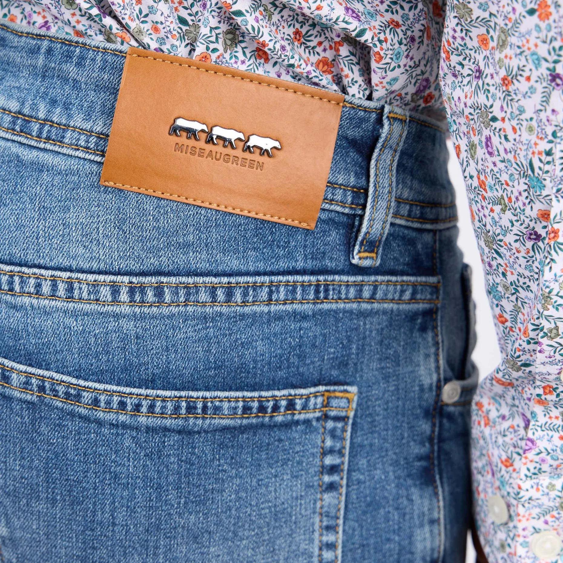 Au quotidien, ce jean bleach blue sera votre meilleur allié ! Son design résolument moderne est sublimé par un léger délavage, cinq poches et une coupe ajustée qui flatte la silhouette en toute simplicité. Pour plus de souplesse et de confort, il est confectionné dans un mélange de coton et élasthanne. Un logo brodé 3 vaches au niveau des poches ainsi qu’un jacron Mise au Green signent cette pièce intemporelle. Associez-la avec n’importe quel haut de votre vestiaire pour une allure dans l’air du temps.
