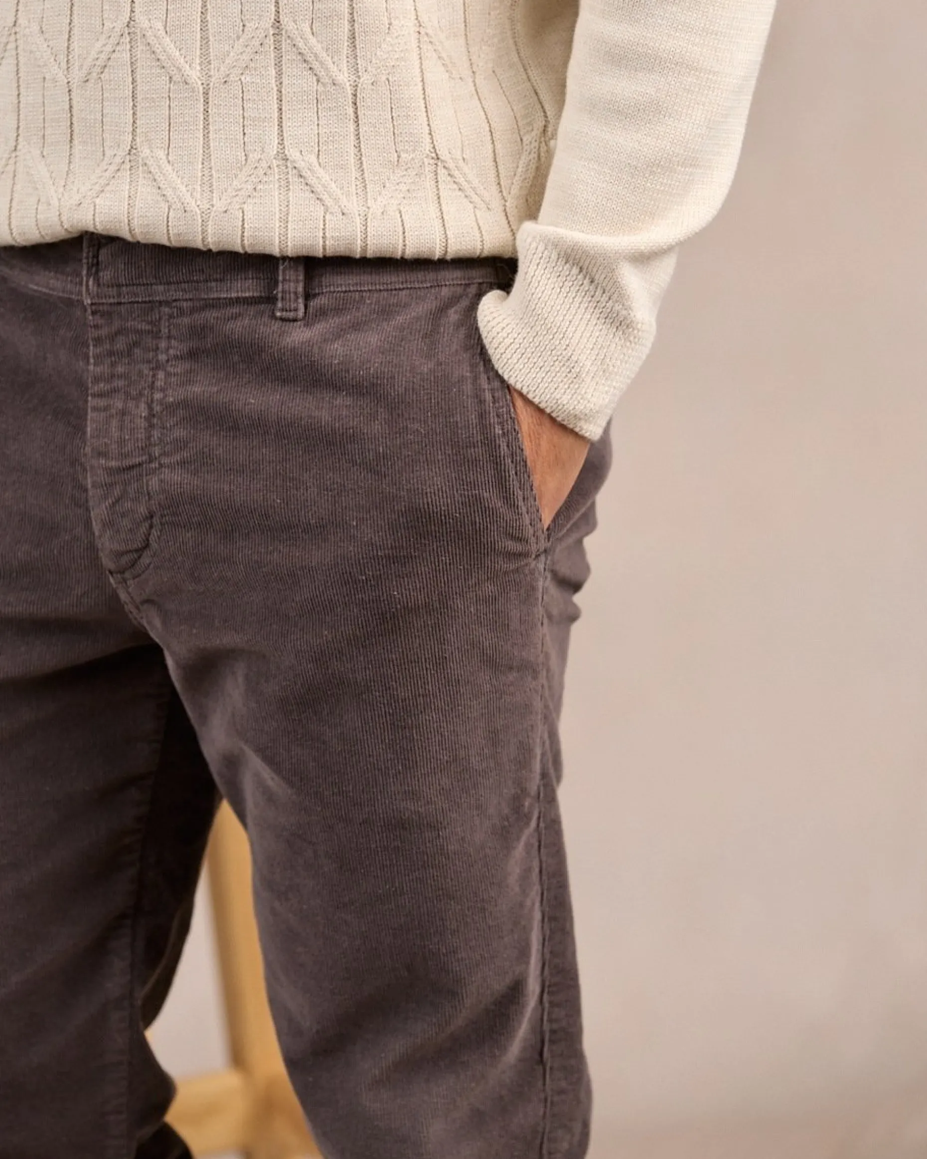 Un pantalon chino en velours auquel il est difficile de résister ! Avec sa coupe flatteuse, il s’adapte à toutes les situations et séduit pour son charme intemporel. Craquez pour son coloris gris, un choix sûr qui se mariera facilement avec le reste de votre vestiaire. Fabriqué dans un tissu doux et confortable, il convient parfaitement à une utilisation quotidienne. Des poches, des passants de ceinture et une taille élastiquée soulignent l’ensemble. Portez-le sans modération pour une allure à la fois chic et décontractée !