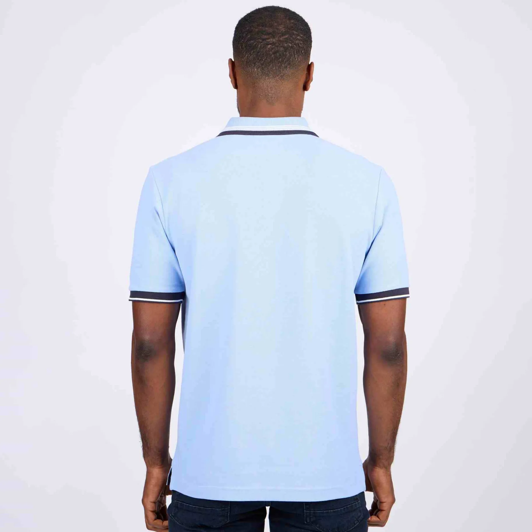 Ce polo à manches courtes est parfait pour être à l’aise toute la journée. Réalisé en coton, il procure un confort optimal et vous suit partout. Optez pour son coloris bleu qui ajoute du dynamisme à votre allure et met en valeur votre silhouette. Naturellement élégant, ce modèle comporte des détails rayés contrastés, un col en bord côtelé et une broderie « 3 vaches » sur la poitrine. Associez-le avec un chino ou un jean pour un look simple et efficace !