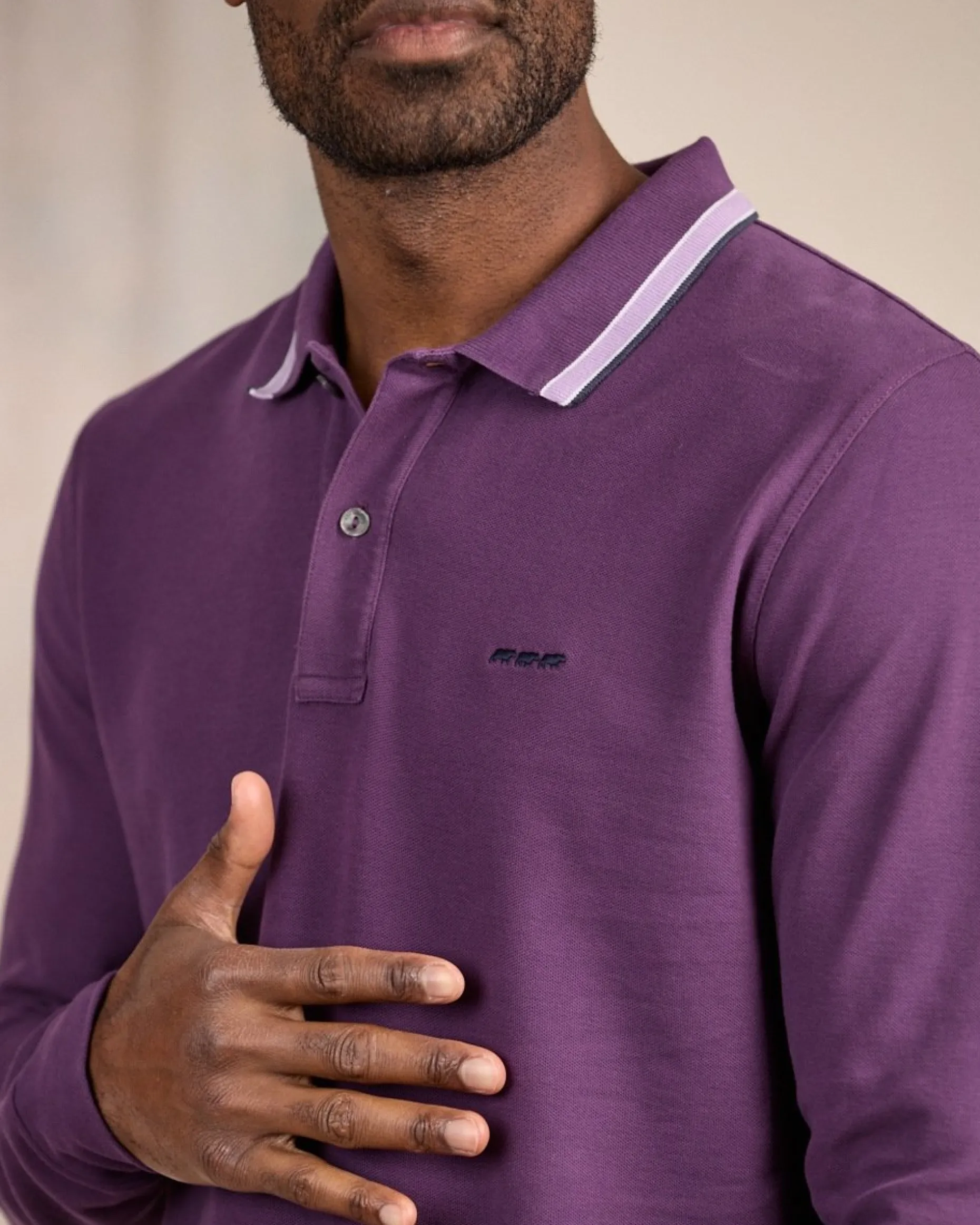 Suivez la tendance avec ce modèle sportif Mise au Green ! Confort et raffinement sont au rendez-vous avec ce polo à manches longues. Il adopte un coloris violet et des finitions contrastées au niveau du col. Agréable et doux à porter, il est conçu en coton. Pour un look décontracté complet, associez-le avec un pantalon chino. Un basique du vestiaire à adopter sans tarder ! Ce polo à la coupe droite comprend un logo « 3 vaches » brodé sur la poitrine.