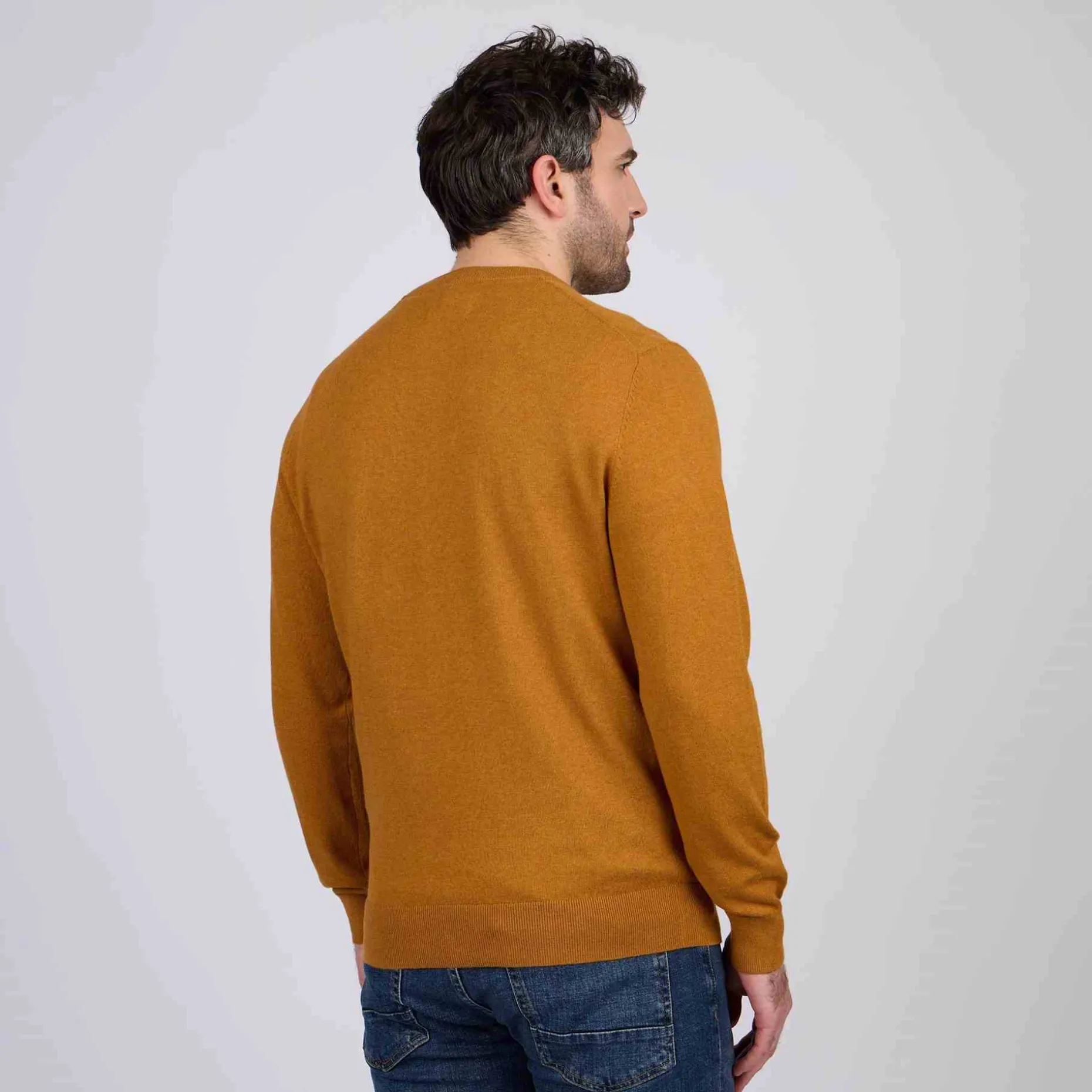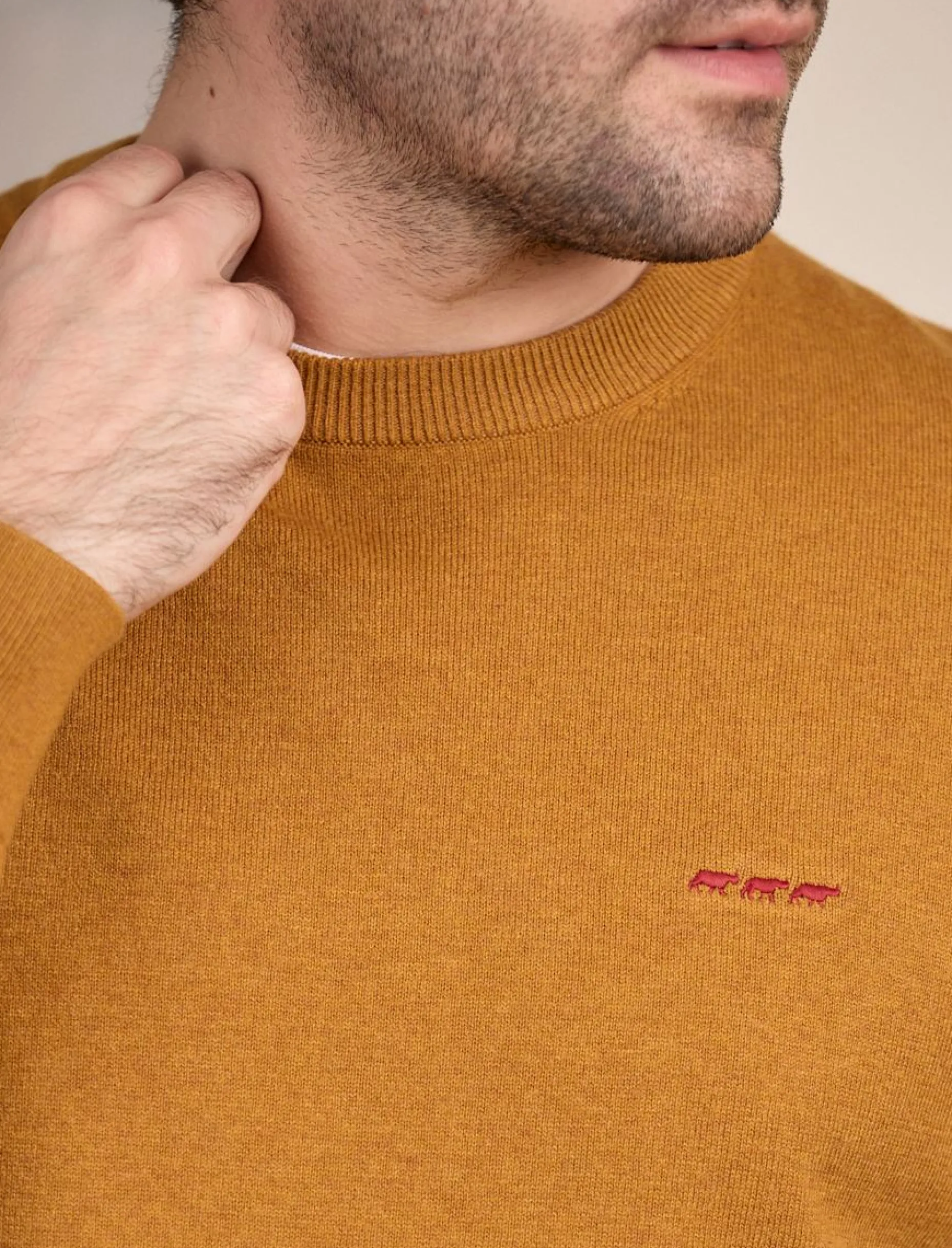 Amateur de style et de simplicité ? Au travail, à la maison ou pendant vos sorties, adoptez ce basique du vestiaire masculin pour compléter vos tenues. Très agréable à porter, ce pull à manches longues allie le confort du coton à la douceur du cachemire (5%). Ce qu’on aime : sa broderie contrastée avec 3 petites vaches, son coloris uni jaune moutarde tendance et son col rond côtelé. Pour des looks raffinés en toutes occasions, c’est indéniablement le modèle qu’il vous faut !
