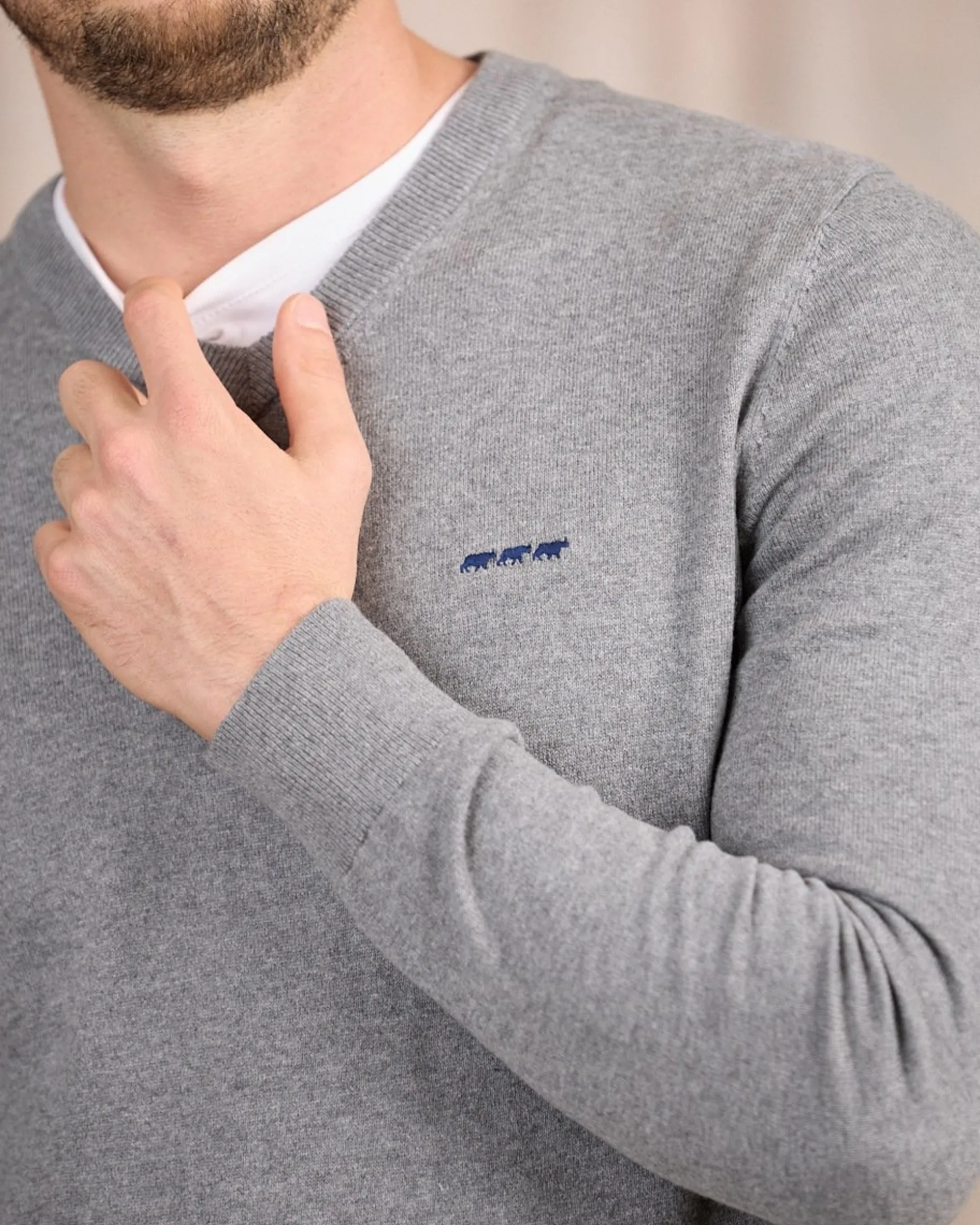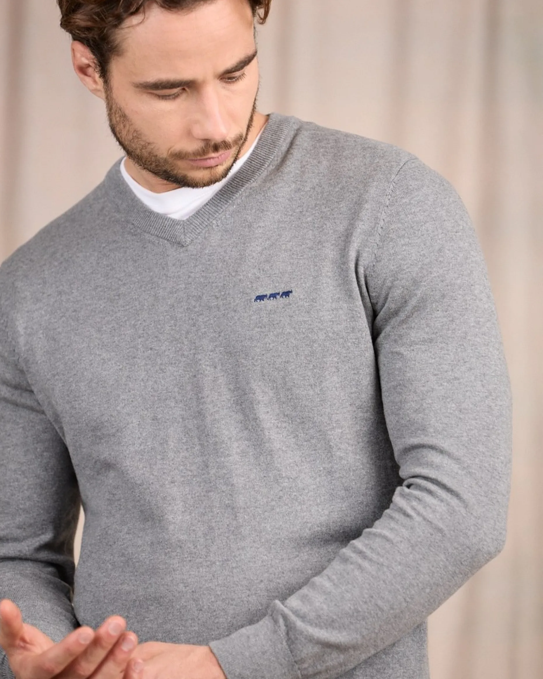 Simplicité et élégance ne font qu’un avec ce pull pour homme. Confectionné en coton avec une pointe de cachemire, cet essentiel du vestiaire se démarque par son confort exceptionnel et ses finitions. Un col V, un coloris gris chiné qui se marie avec tout ainsi qu’une broderie contrastée Mise au Green le rendent absolument irrésistible. Arborez une allure soignée en toutes circonstances en le portant seul ou par-dessus un tee-shirt.