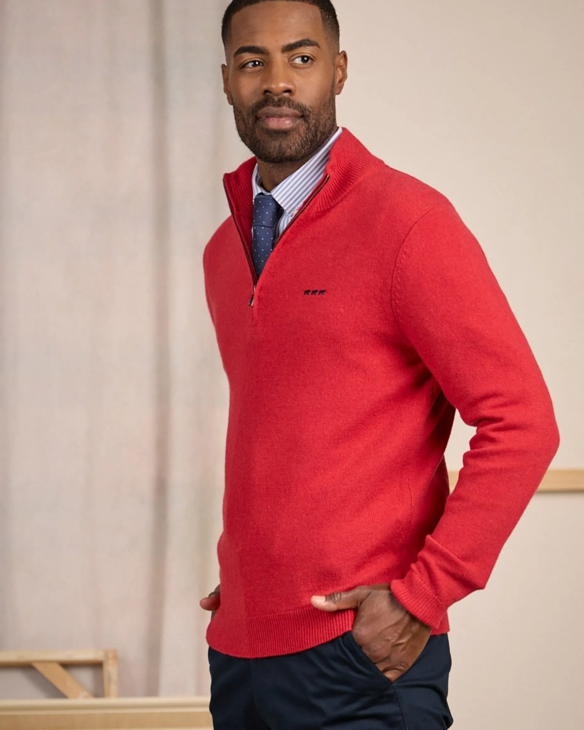 Ce pull à col zippé est un incontournable du vestiaire masculin ! Mélange de laine et de polyamide, il offre confort et chaleur en toutes circonstances. Des finitions côtelées au niveau des poignets, de la basse et du col complètent ce modèle tendance. Décliné dans un coloris rouge, il dynamise votre allure et se porte facilement en superposition pour mettre en valeur votre tee-shirt ou votre chemise. Pour des looks décontractés, laissez-vous séduire par ce basique !