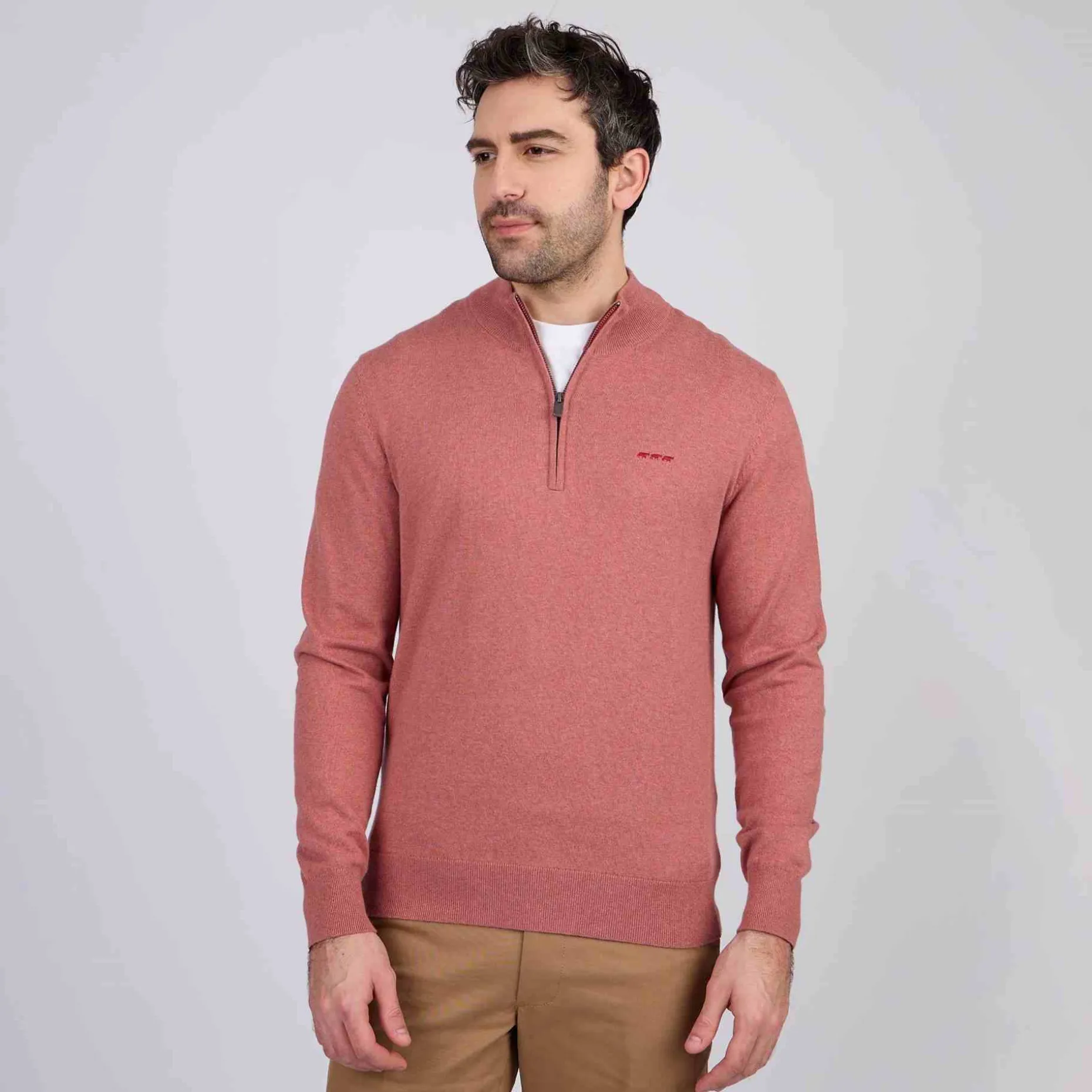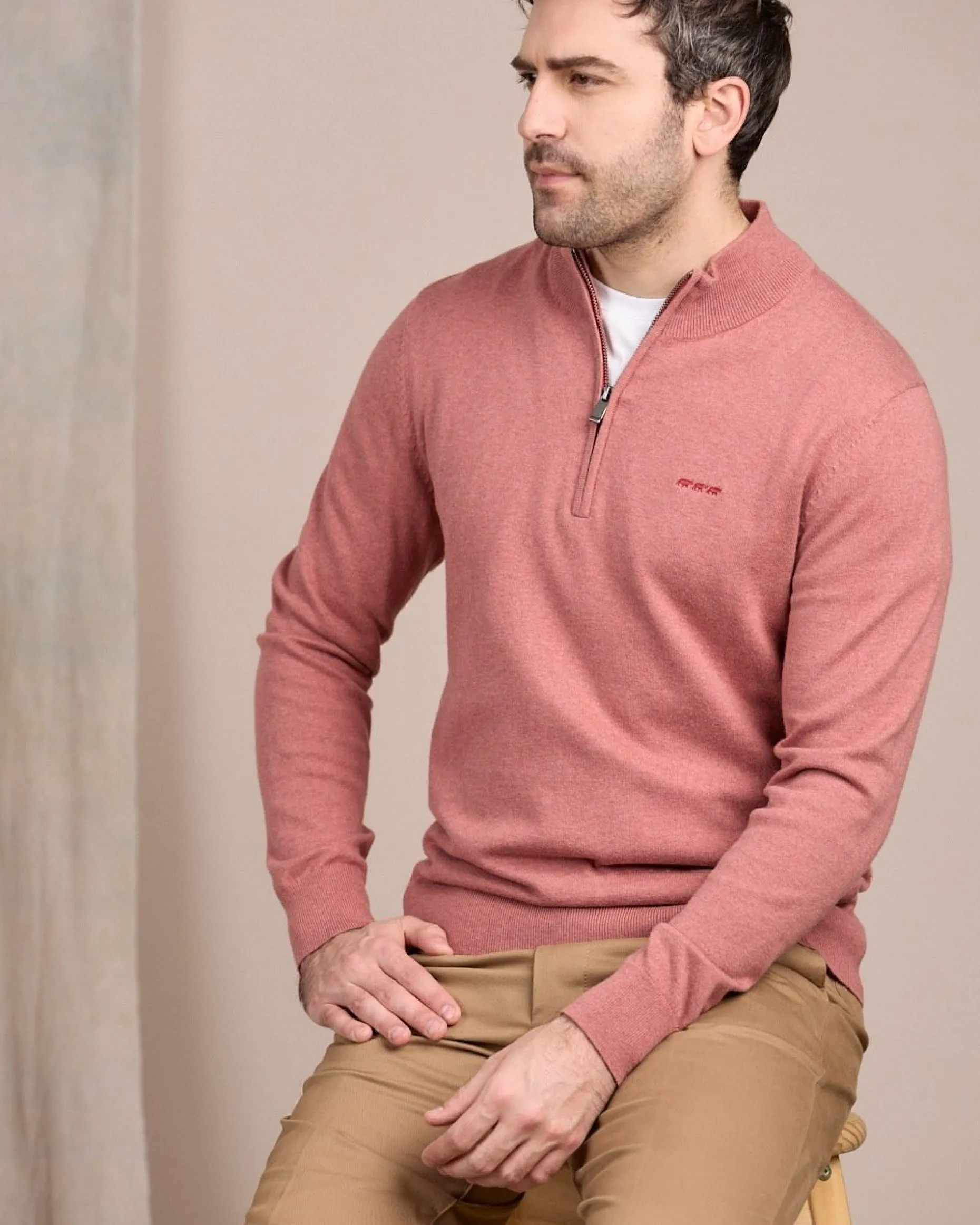 À la fois chic et sobre, ce pull à manches longues est un indémodable ! Décliné dans un coloris bois de rose, ce modèle tendance se porte aussi bien avec un jean qu’un pantalon chino. Il possède une coupe droite et un col avec fermeture éclair pour des tenues confortables, mais toujours soignées. Confectionné en coton avec une pointe de cachemire, il offre une sensation de confort agréable sur la peau. Des finitions en bord-côtes et un logo 3 vaches brodé sur la poitrine apportent la touche finale.