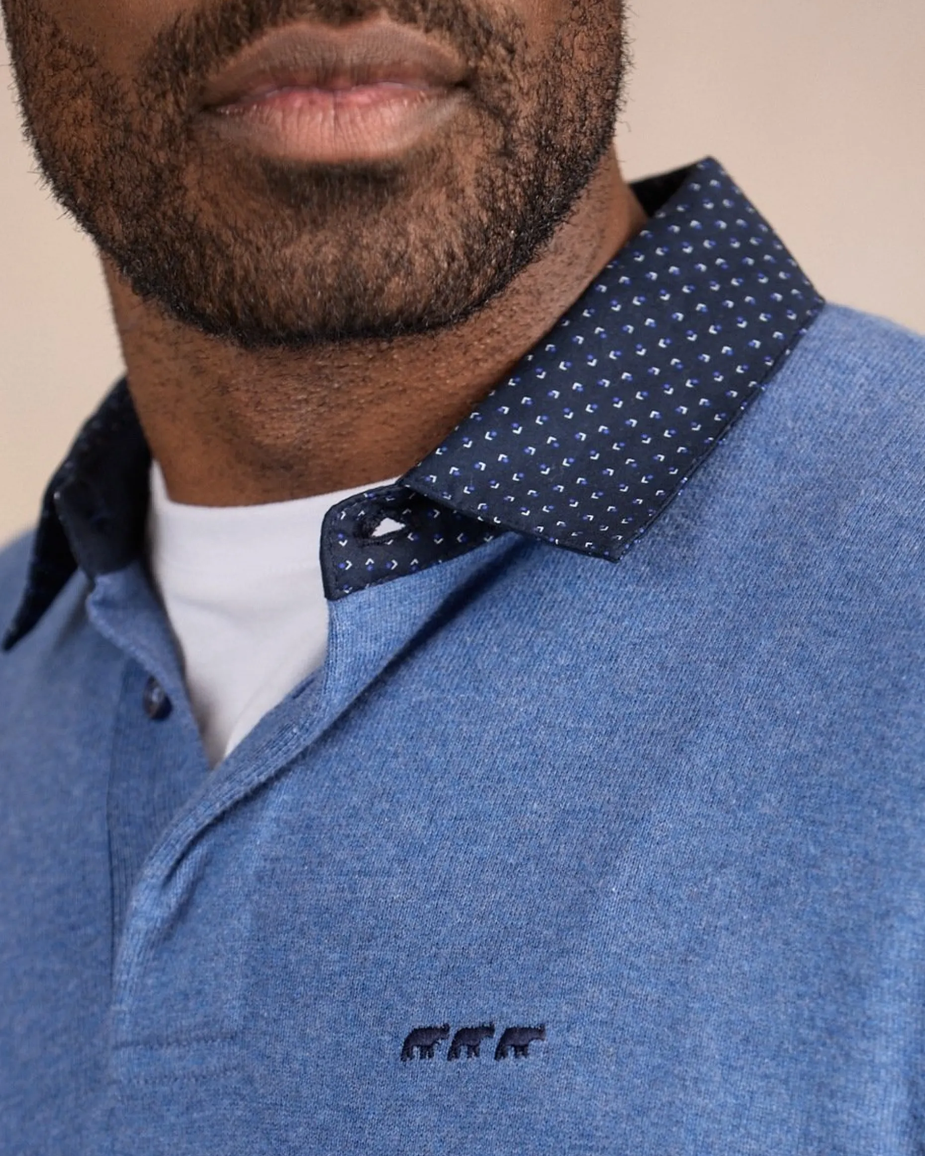 Donnez du caractère à vos tenues avec ce pull pour homme à manches longues ! Sa maille réalisée en coton avec une pointe de cachemire vous enveloppera dans un cocon de douceur. Vous allez adorer son coloris bleu chiné et son col polo contrasté. Des finitions côtelées, une coupe droite et un logo brodé « 3 vaches » finalisent cet essentiel. Pour aller au travail, sortir ou rester à la maison, portez-le à volonté et mixez-le avec tous vos pantalons !