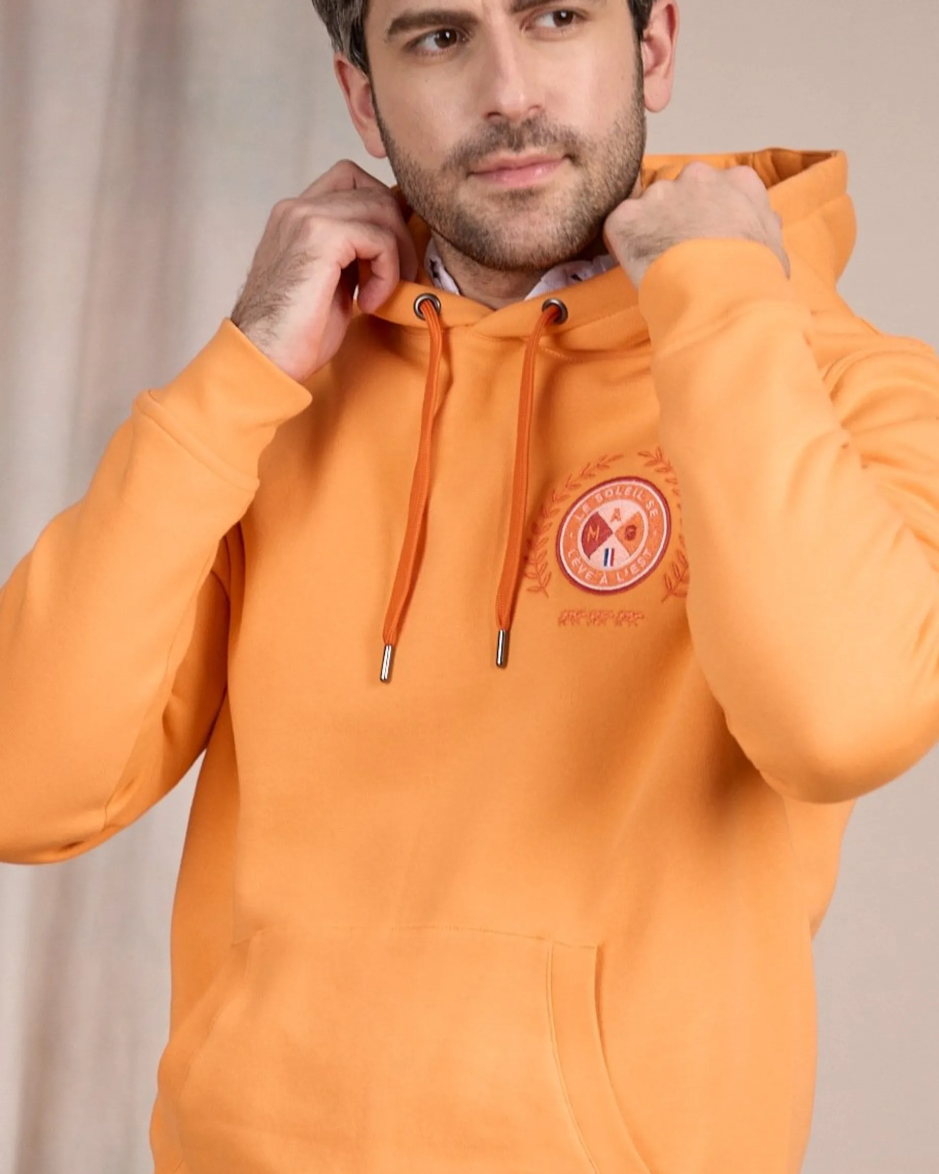 Pour un style décontracté réussi, le hoodie est LA pièce à posséder ! Avec son design tendance et son coloris orange, ce modèle pour homme s’associe facilement avec un pantalon ou un jogging. Selon vos envies, portez-le seul ou superposez-le avec un tee-shirt ! Des finitions soignées rehaussent ce modèle comme des longs cordons de serrage, une capuche et un patch brodé sur la poitrine. Conçu avec du coton, il se distingue par sa douceur et sa sensation de confort.