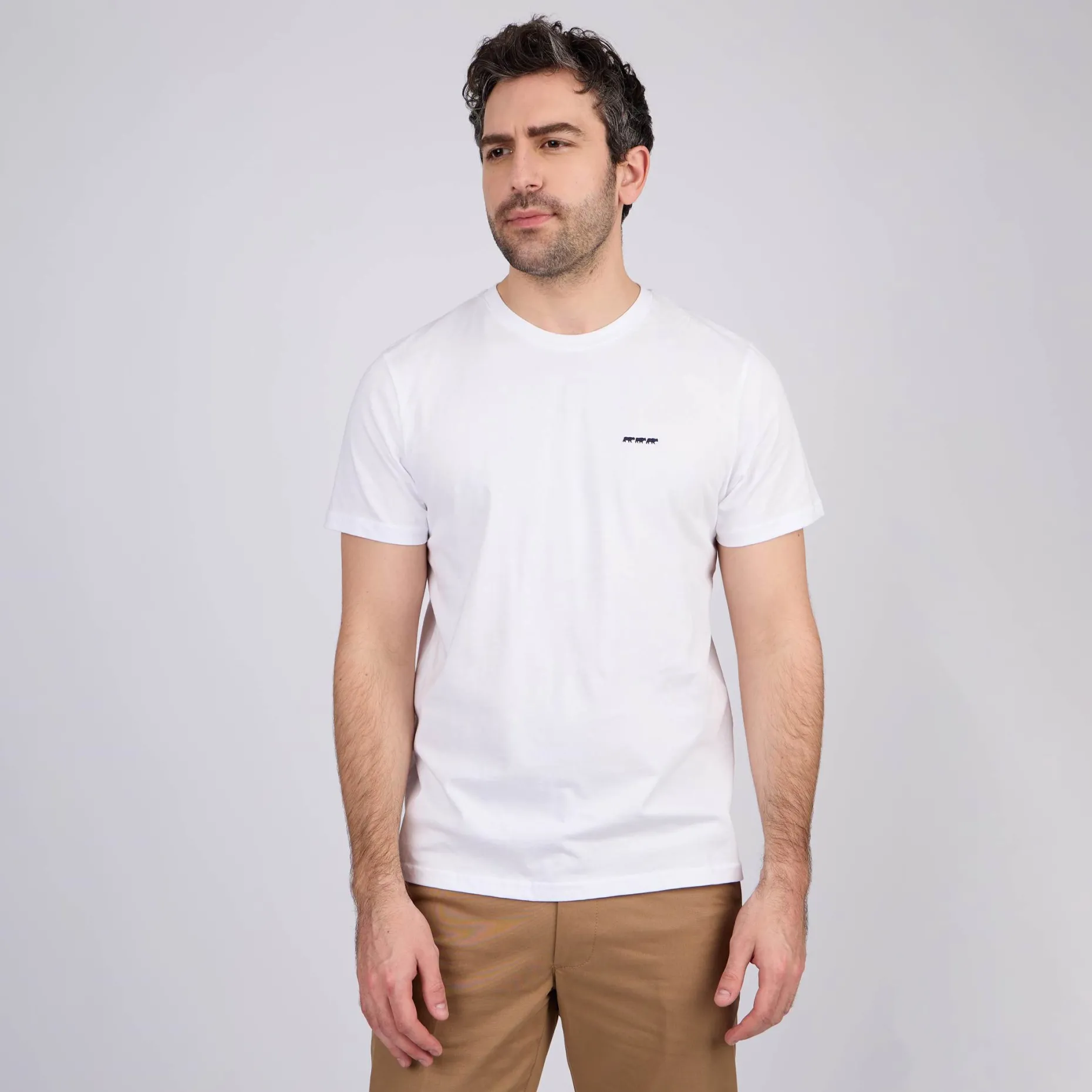 Soyez à l’aise toute la journée avec ce tee-shirt pour homme à manches courtes. Avec son coloris blanc uni, son col rond et sa coupe droite, ce modèle convient à tous les styles et morphologies. Confectionné intégralement en coton, il garantit douceur et respirabilité. Le détail qui change tout ? Sa petite broderie « 3 vaches » contrastée. Cet essentiel facile à vivre se porte seul ou sous un gilet de notre collection pour un style à la fois élégant et décontracté !