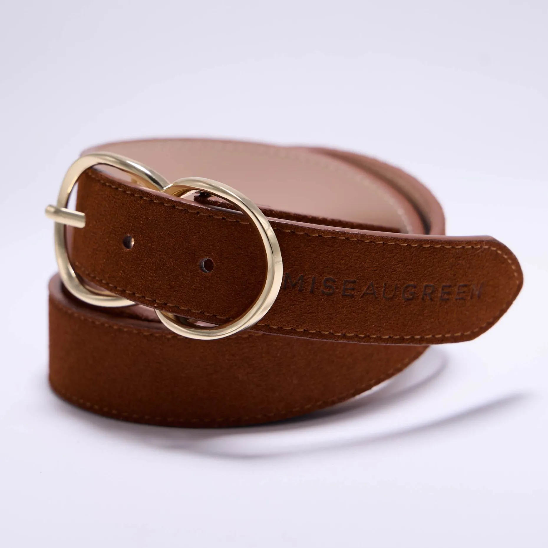 Accessoirisez vos tenues avec cette ceinture marron en cuir suédé ! Essentielle en toutes circonstances, elle permet aussi bien de maintenir un pantalon que de ceinturer une veste. Réalisé dans un cuir souple et doux, cet accessoire est finalisé avec une boucle arrondie dorée en métal. C’est aussi une belle idée de cadeau !