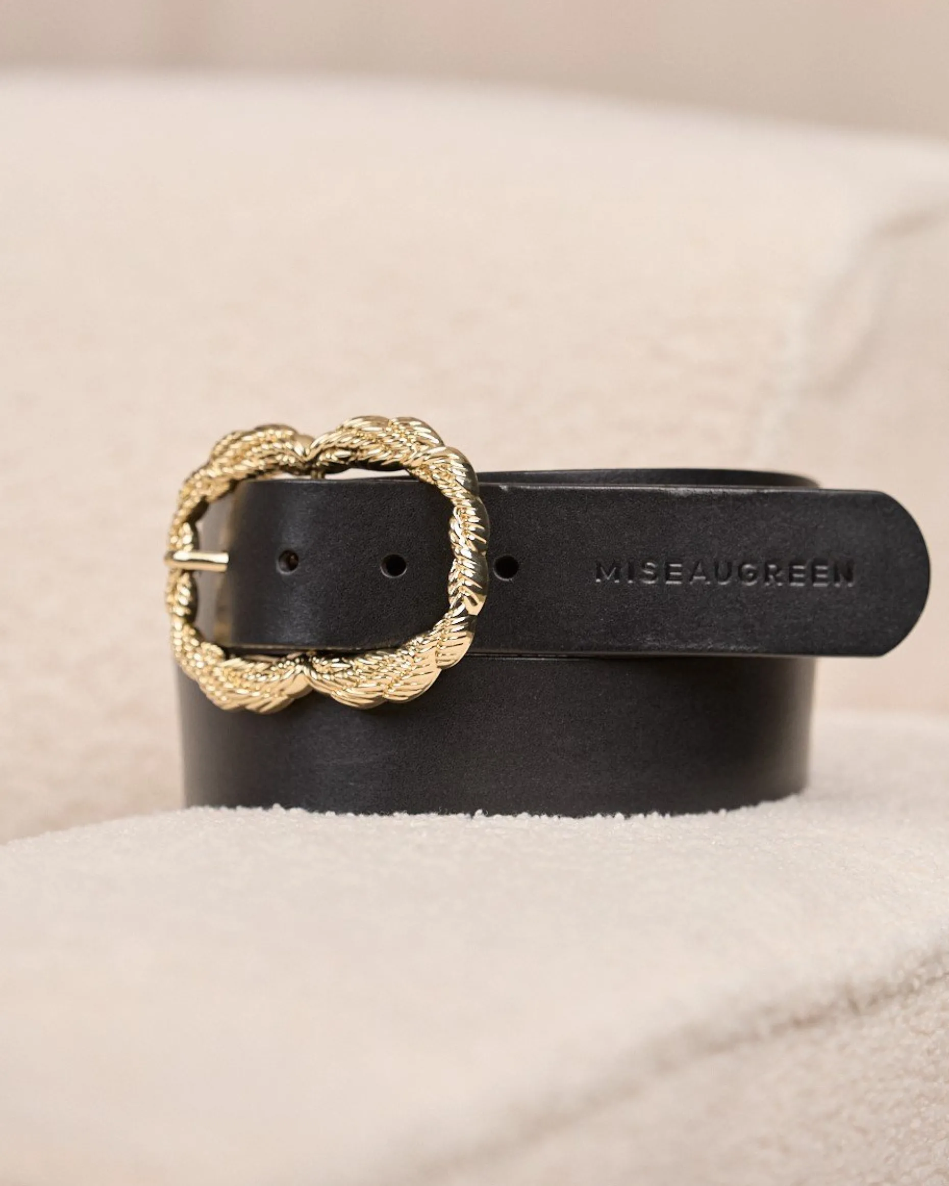 Envie de sublimer vos tenues avec une ceinture versatile et élégante ? Découvrez notre modèle 100 % cuir aux lignes épurées. Avec son coloris noir intemporel, il est impossible de s’en lasser. Son atout mode ? Sa boucle dorée torsadée qui apporte une note sophistiquée. Avec une robe, un pantalon ou une jupe : elle s’adapte à n’importe quel look !