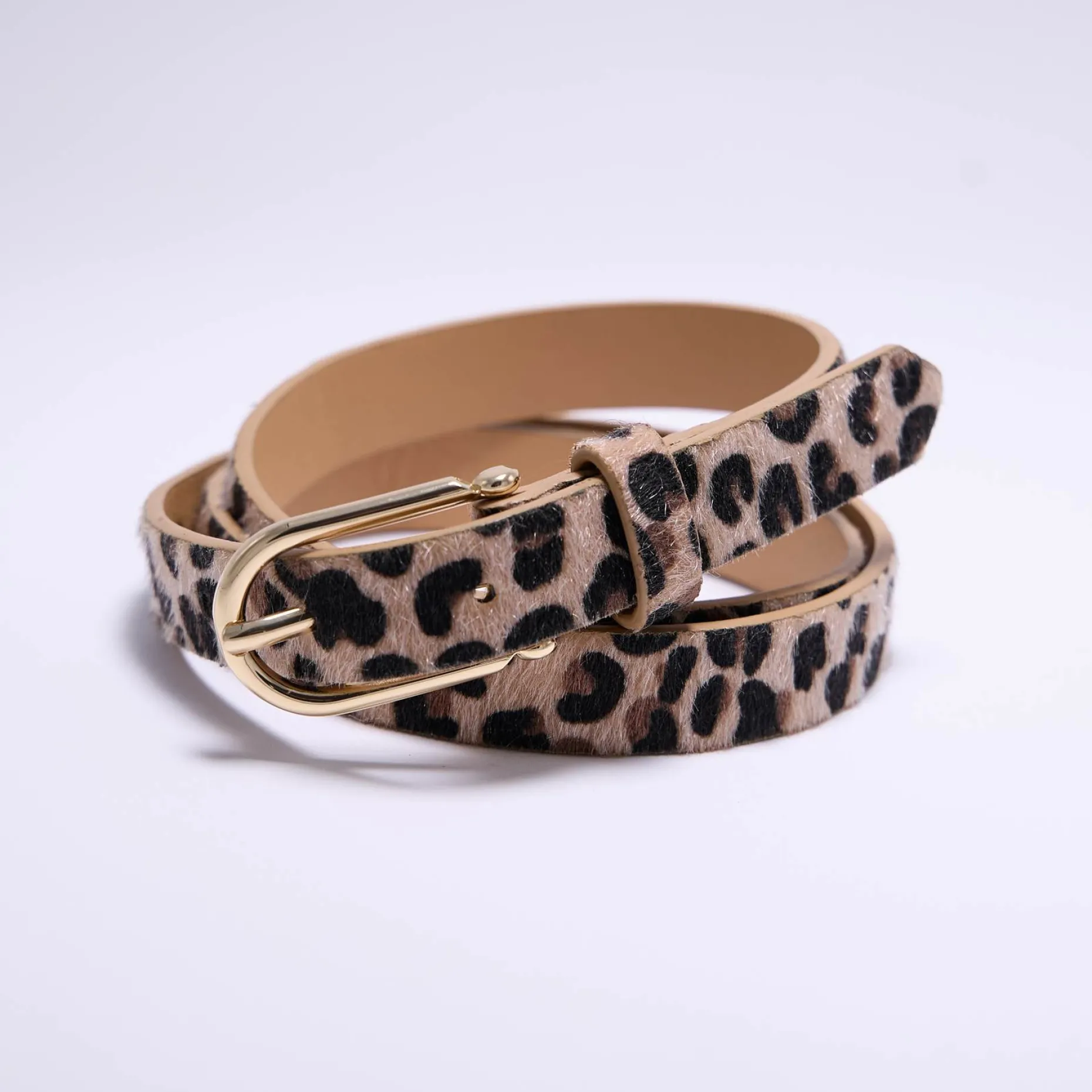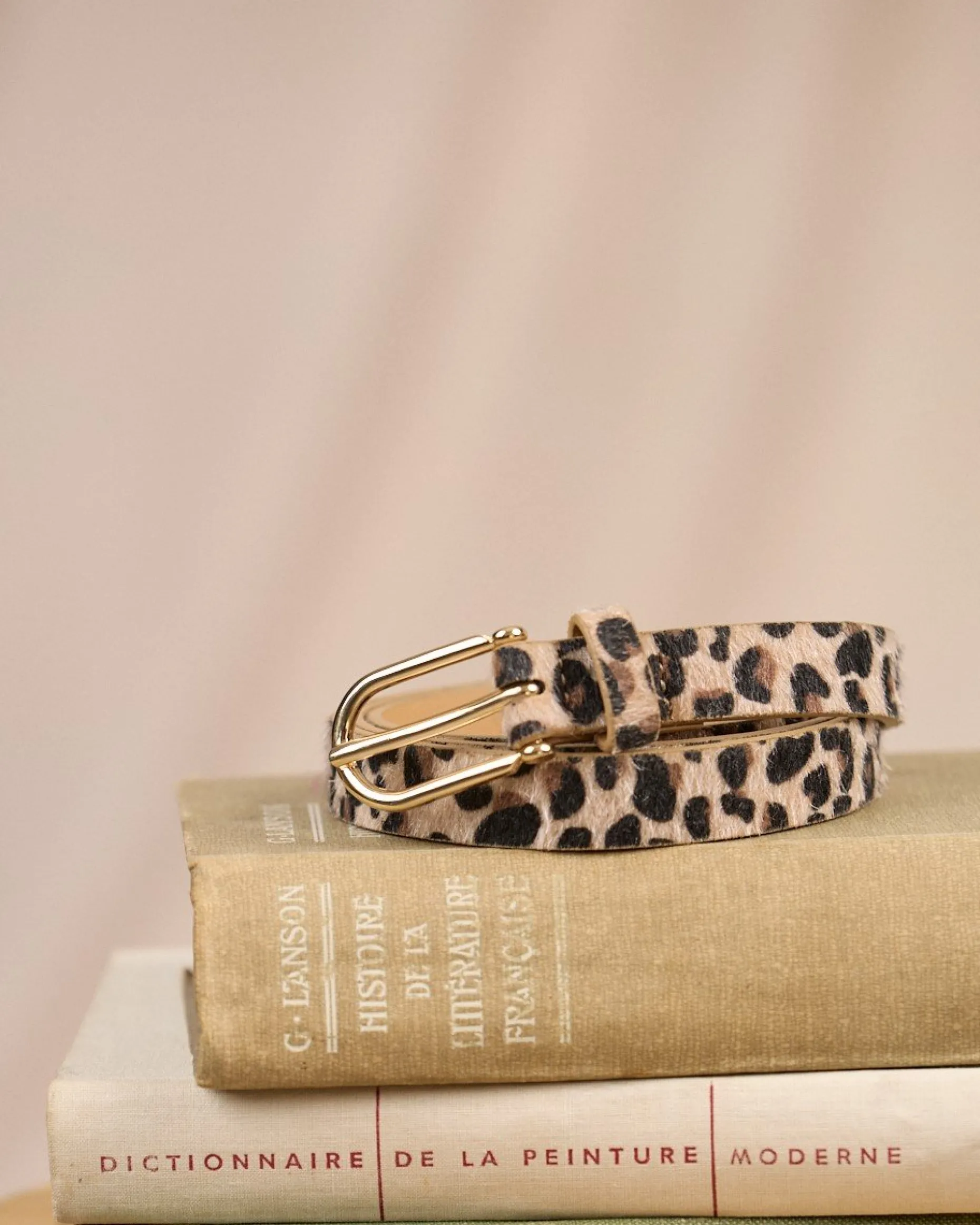 Audacieuse et chic, cette ceinture avec poils est doté d’un imprimé léopard. Véritable bijou, ce modèle beige s’anime d’une grosse boucle dorée. Pile dans la tendance, il se porte sur un jean ou sur une veste au gré de vos envies. C’est l’accessoire parfait pour apporter de l’originalité à vos tenues !
