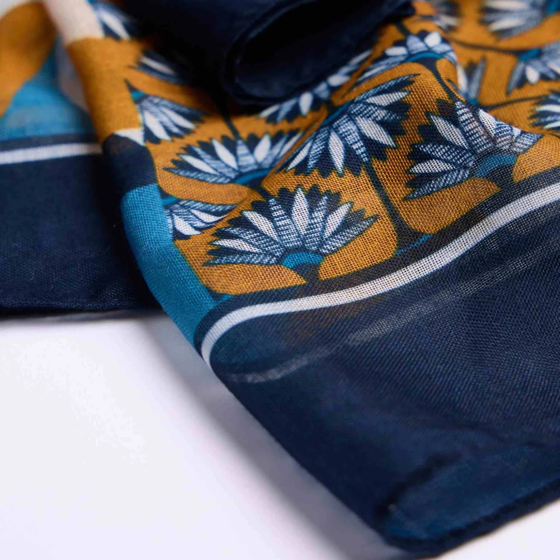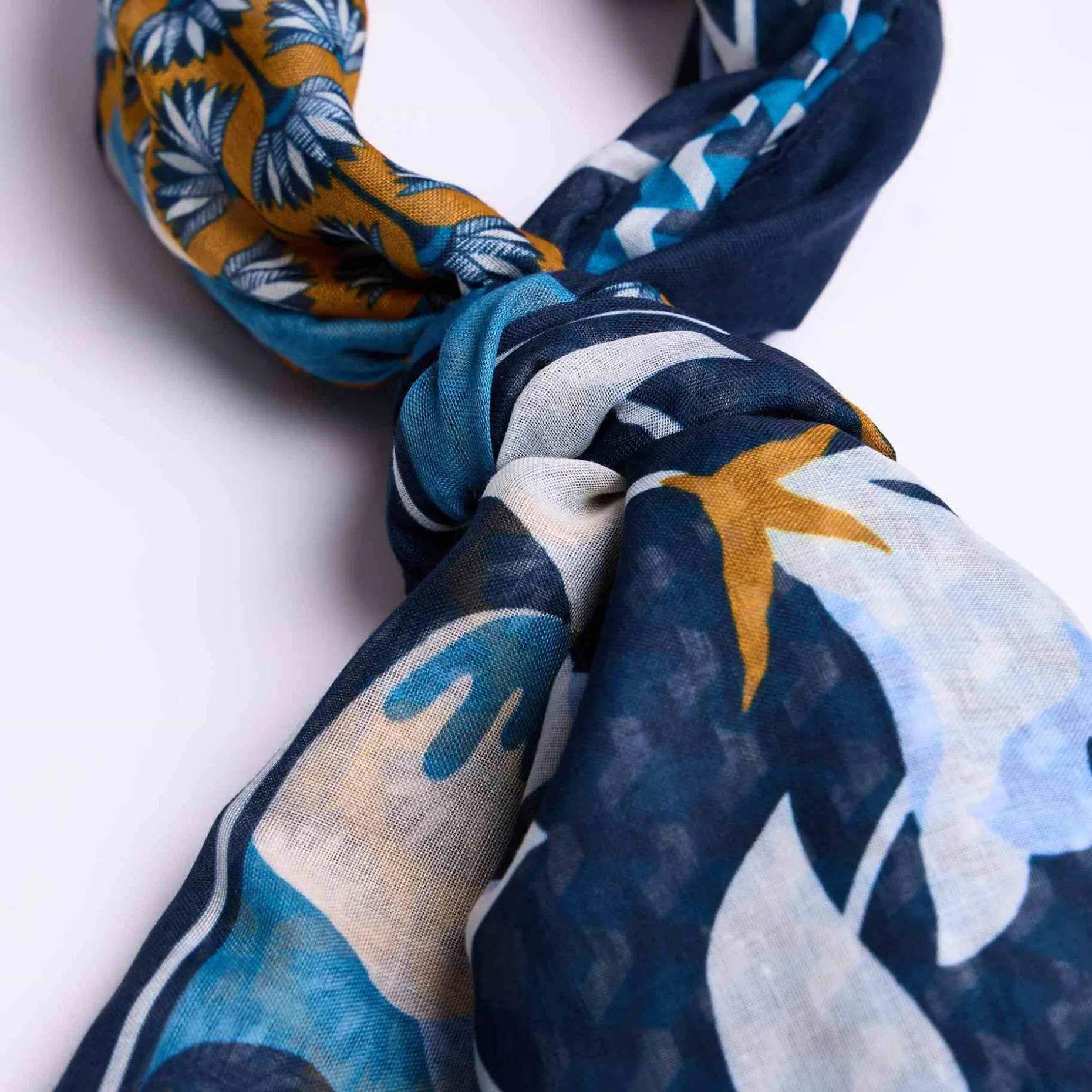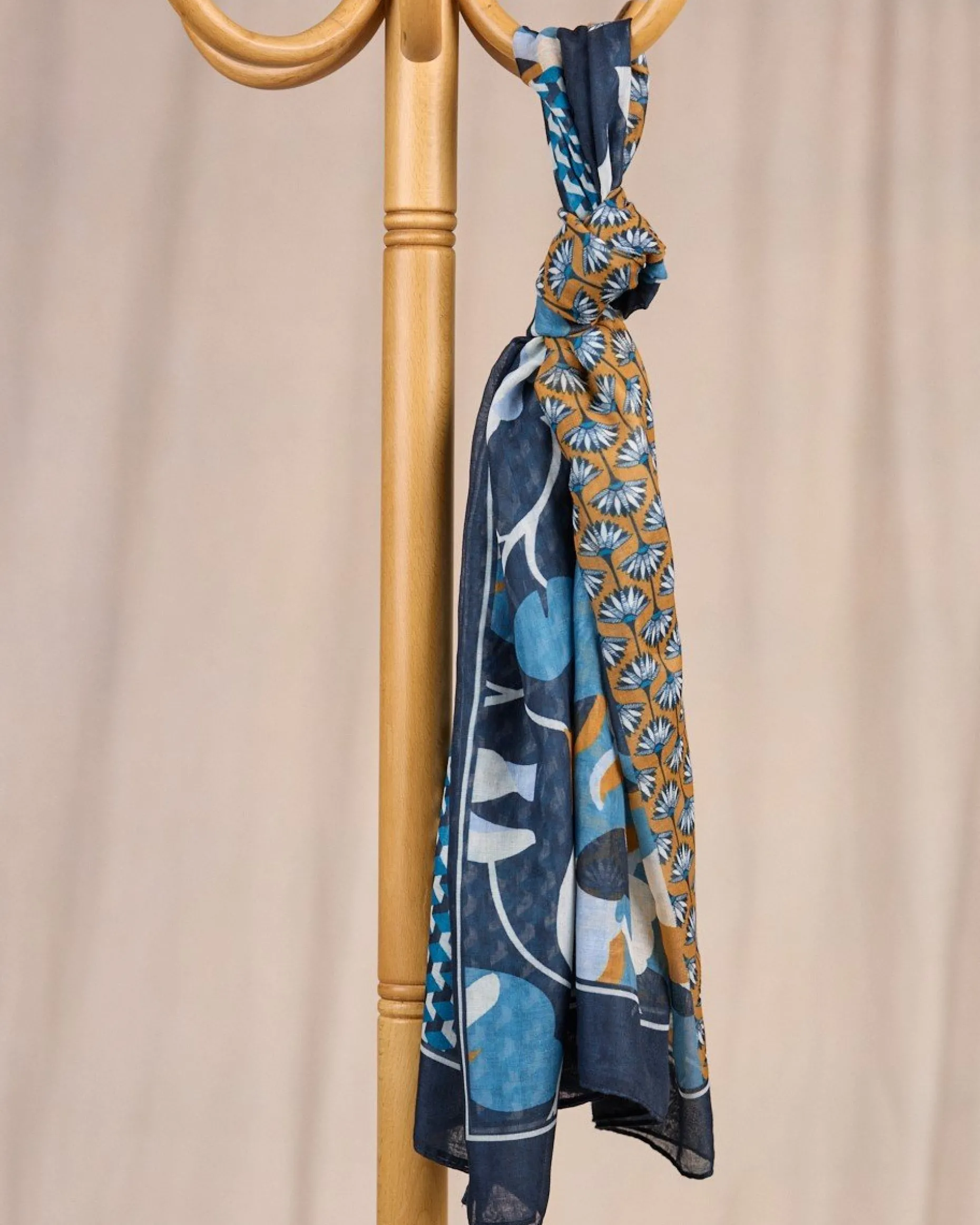 Accessoire élégant par excellence, ce chèche bleu féminin rehausse vos tenues et comporte des motifs raffinés. Son tissu léger et doux est entièrement réalisé en polyester recyclé. Il vous habille en toute simplicité et se noue au gré de vos envies autour de votre cou, de votre sac ou dans vos cheveux !