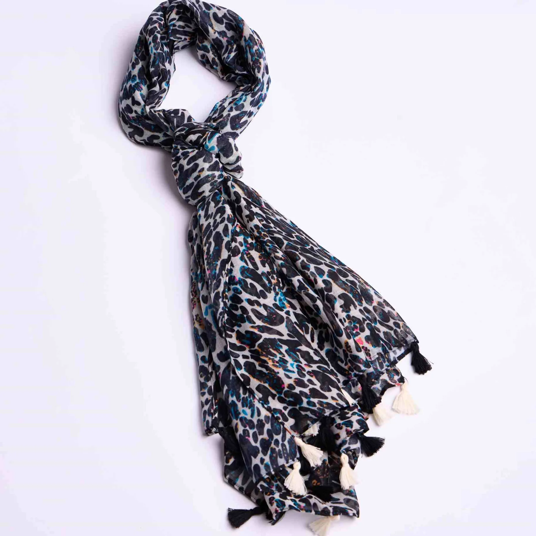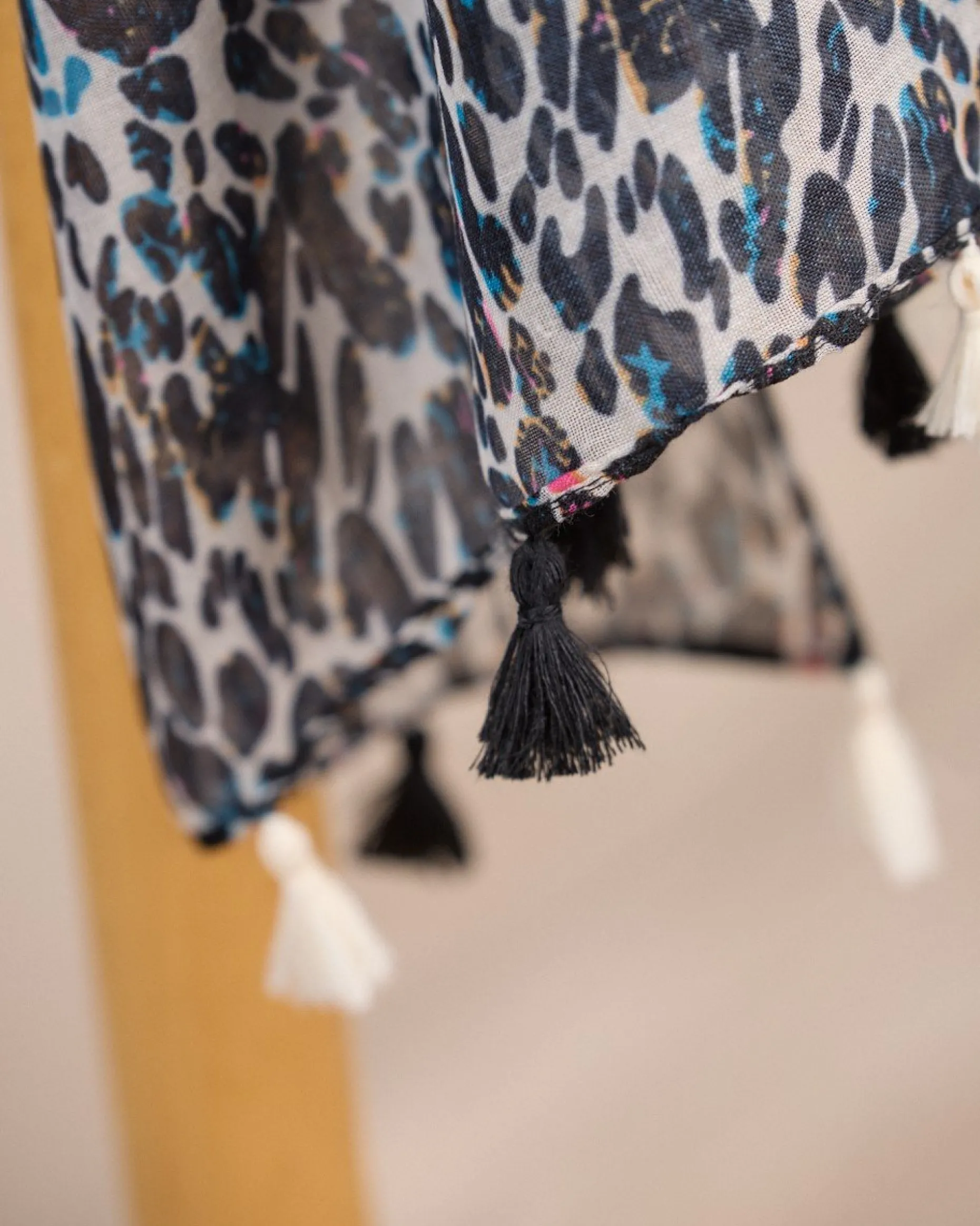 Ce chèche pour femme fantaisie est l’accessoire indispensable pour styliser vos tenues ! Cet accessoire mode se pare de petits pompons brodés à ses extrémités. En polyester recyclé, son tissu est léger et agréable à porter. Ce modèle plein de charme se distingue par des petites touches de couleurs et un imprimé exclusif.