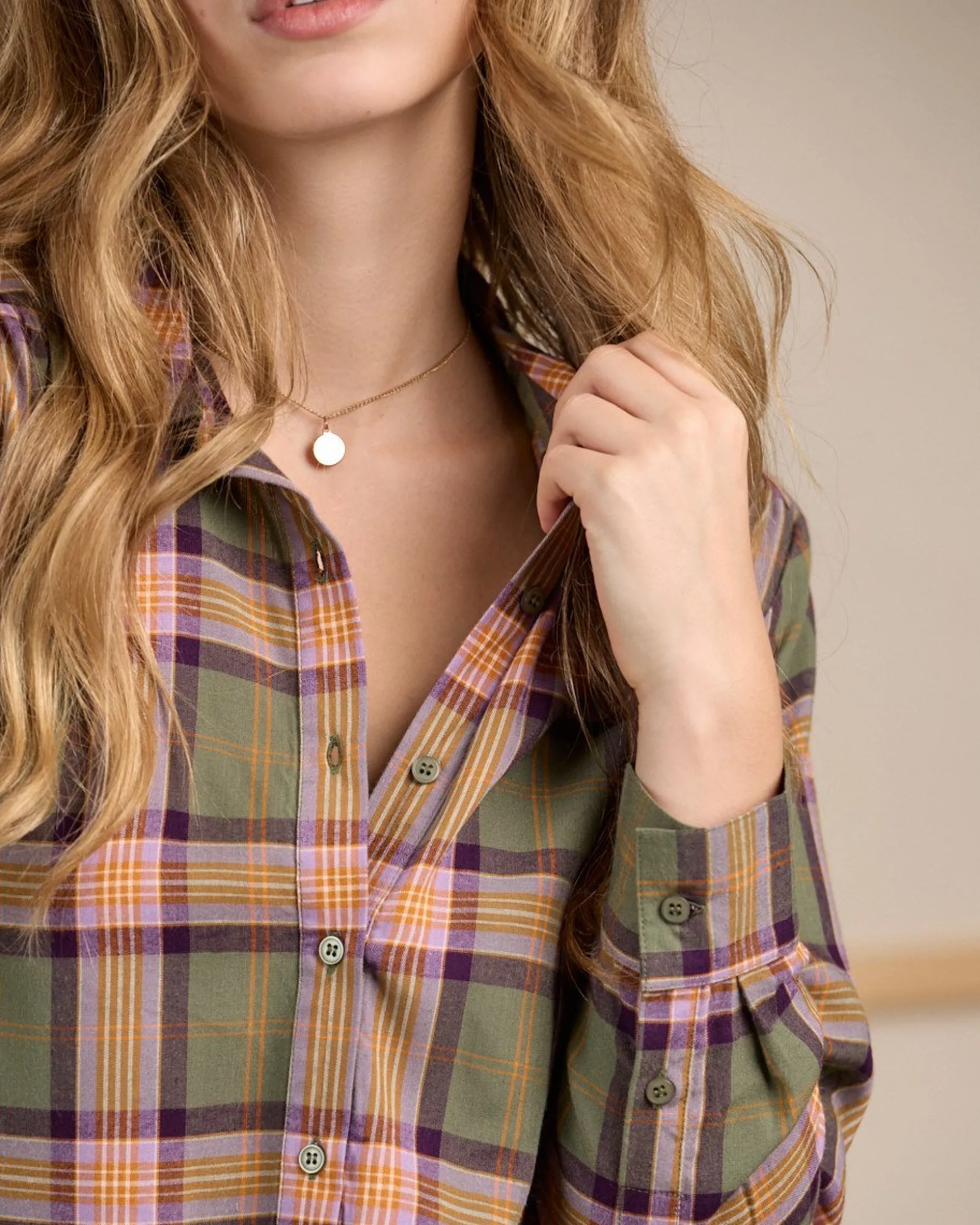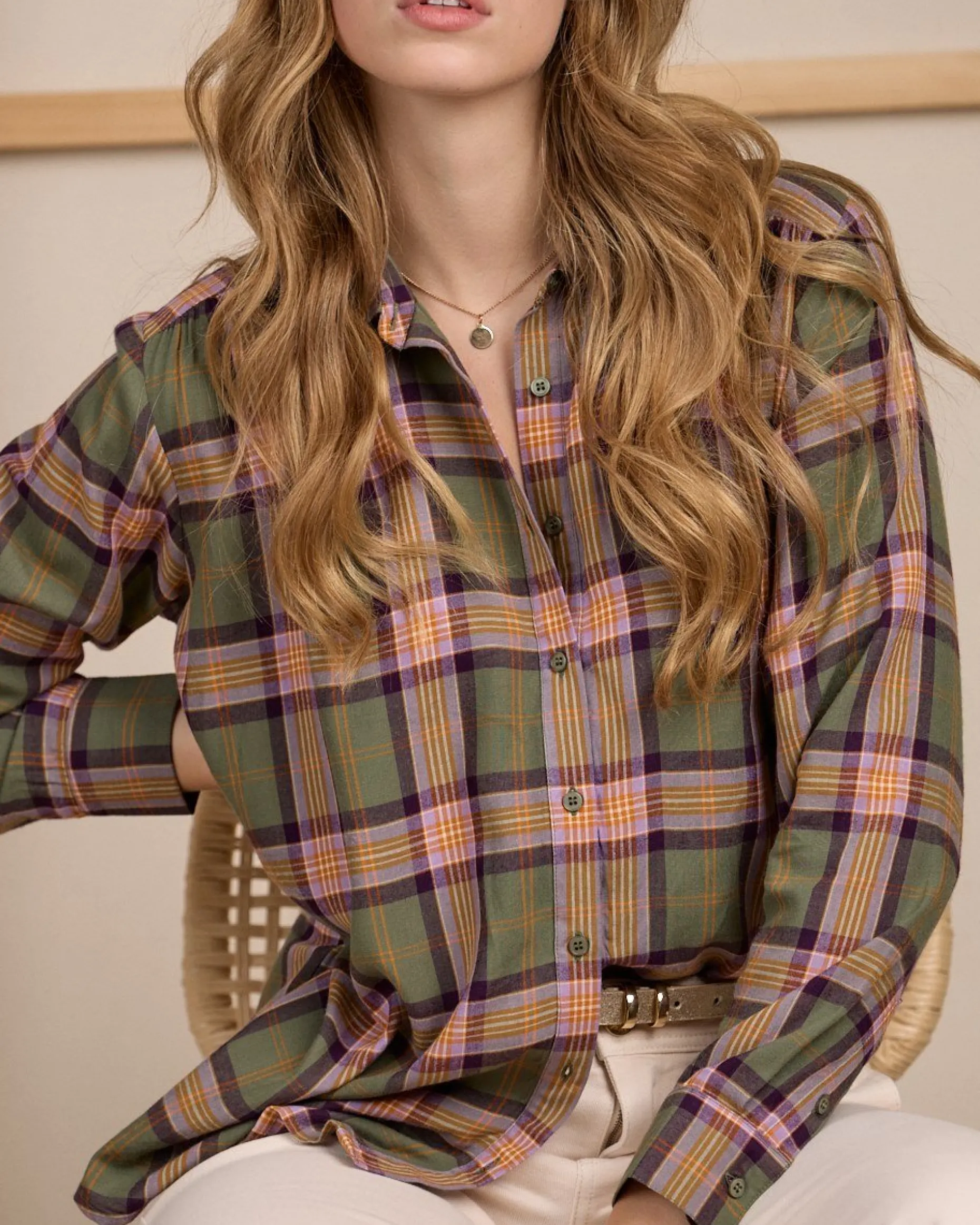 Complétez votre dressing avec cette chemise à carreaux Mise au Green ! Réalisé dans un tissu soyeux et léger en coton, ce modèle à manches longues est idéal pour des tenues féminines et décontractées. Ses atouts mode ? Son coloris kaki facile à vivre, sa coupe confortable et sa plaquette dorée à l’arrière. Il se marie parfaitement avec un pantalon clair ou un jean !