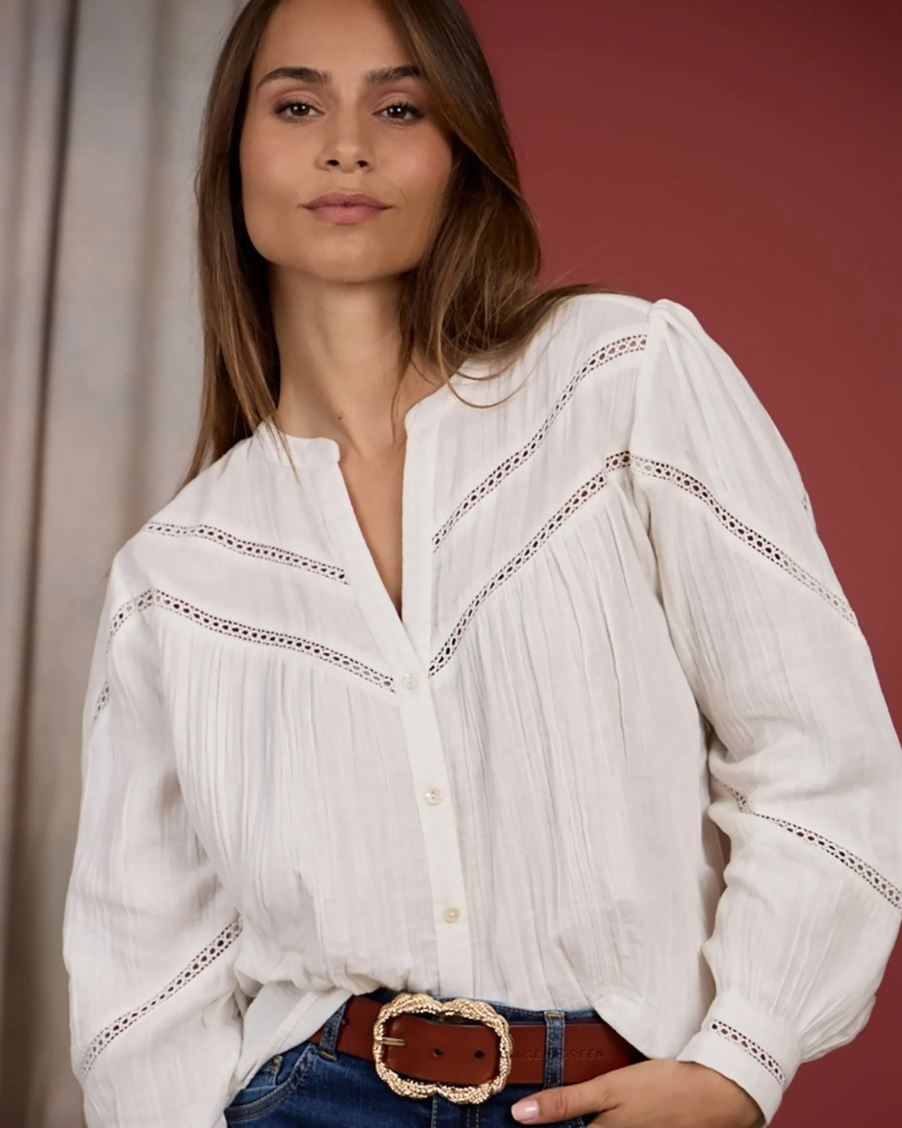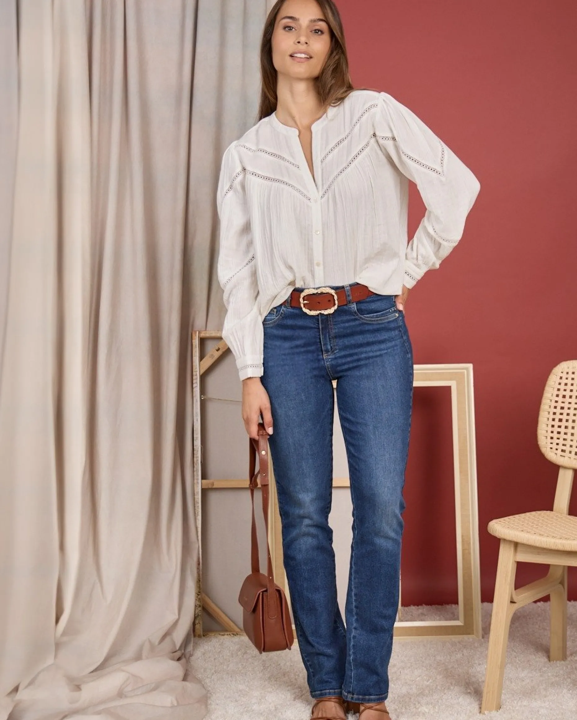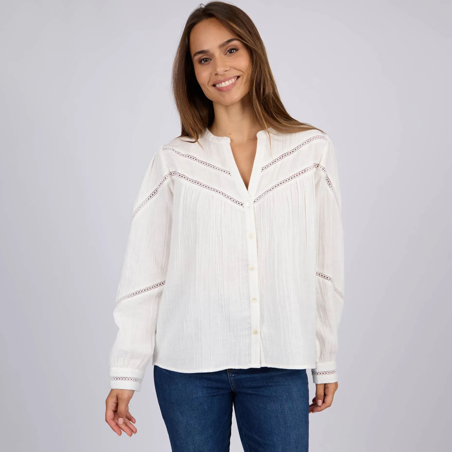 Pièce phare du dressing, ce chemisier à manches longues blanc est un coup de cœur ! Conçu entièrement en coton, il garantit un confort sans faille. Grâce à son coloris uni X, ce modèle tendance s’adapte à toutes vos envies. Ses détails ajourés, son effet froissé, son col V et sa fermeture boutonnée lui confèrent une apparence romantique. Le détail final : sa coupe fluide qui met en valeur votre silhouette !