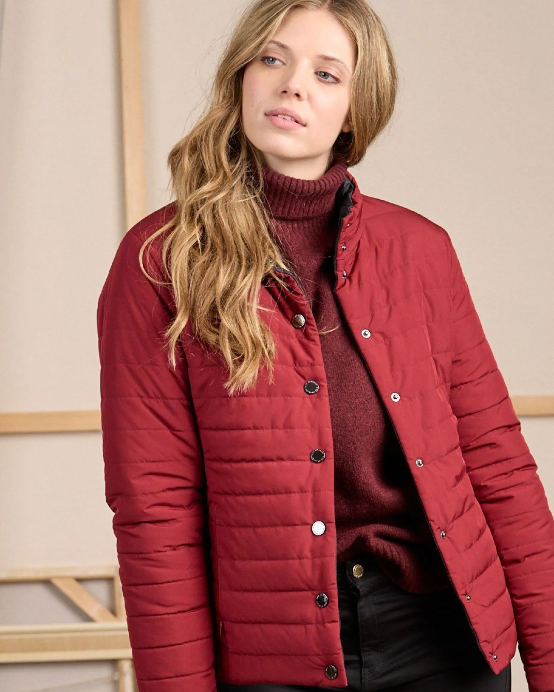 Envie de changer de style selon vos humeurs ? À la fois technique et esthétique, cette doudoune réversible s’adapte à vos envies. Chaude, légère et pratique : elle a tout bon ! Selon l’occasion, choisissez la face noire au fini déperlant ou la face bordeaux en tissu. Ce modèle présente une fermeture boutonnée, des poches latérales et un patch Mise au Green. Deux styles, deux ambiances, et un maximum de style !