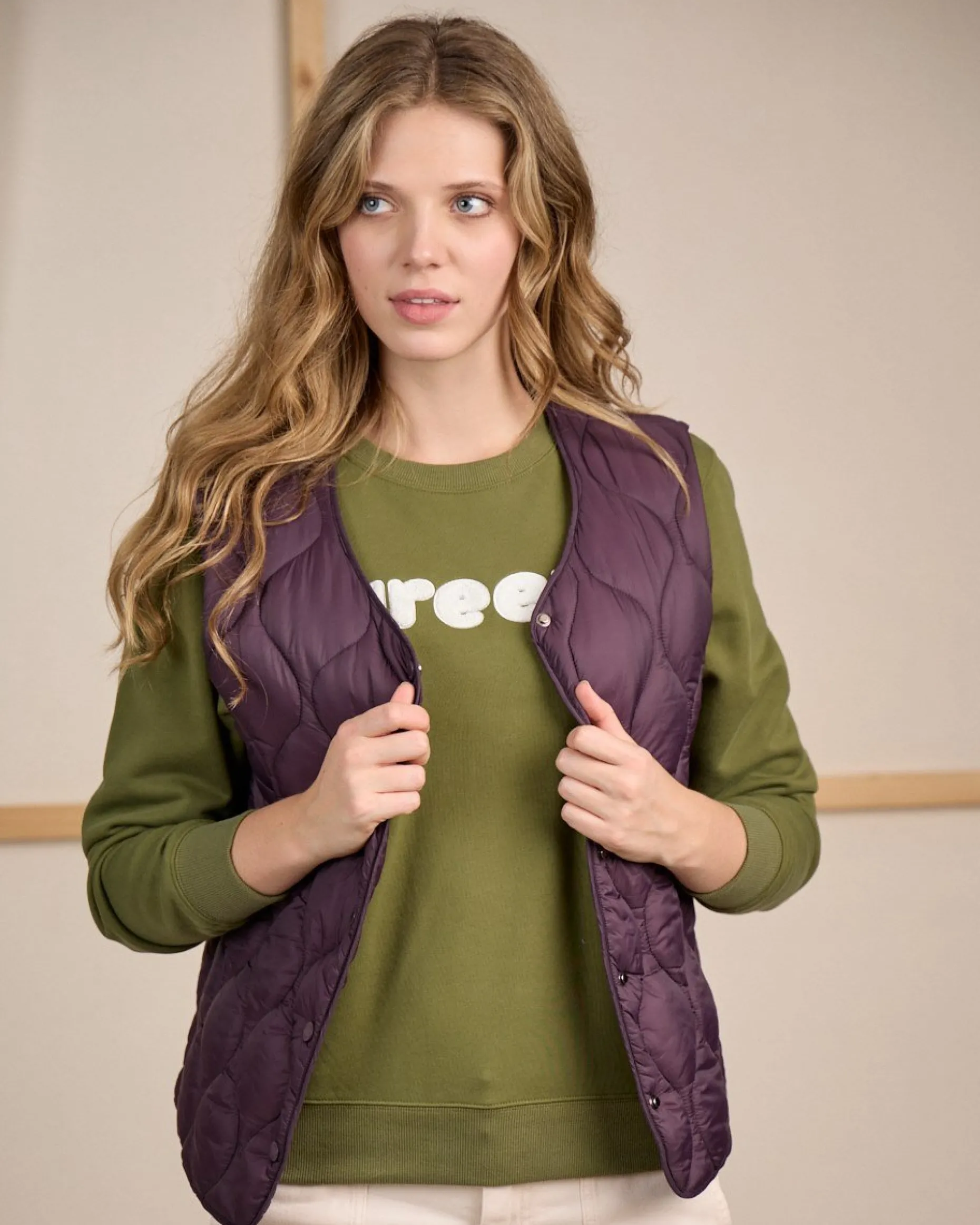 Fonctionnelle et versatile, cette doudoune sans manches violet vous suit au quotidien ! Conçue en polyamide, elle vous isole du froid, du vent et de la pluie. Elle est équipée d’une fermeture boutonnée à l’avant, de poches latérales zippées et d’une petite encolure en V. Compacte, légère et fine : elle va rapidement devenir votre indispensable de la saison !